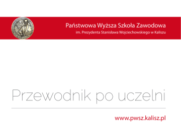 Państwowa Wyższa Szkoła Zawodowa im. Prezydenta Stanisława Wojciechowskiego w Kaliszu Przewodnik po uczelni www.pwsz.kalisz.pl Spis treści Słowo Rektora – śmiało w przyszłość . . . . . . . . . . . . . . . . . . . . . . . . . . . . . . . . . . . . . . . . . . . . . . . . . . . . 1 Kalisz – miasto ze wszystkich w Polsce najstarsze . . . . . . . . . . . . . . . . . . . . . . . . . . . . . . . . . . . . . . . . . 2 PWSZ – akademicka wizytówka miasta i regionu. . . . . . . . . . . . . . . . . . . . . . . . . . . . . . . . . . . . . . . . . . 4 Wydział Medyczny – galeria zdrowia i urody . . . . . . . . . . . . . . . . . . . . . . . . . . . . . . . . . . . . . . . . . . . . . 6 Wydział Politechniczny – raj przyszłych inżynierów . . . . . . . . . . . . . . . . . . . . . . . . . . . . . . . . . . . . . . 8 Wydział Rehabilitacji i Sportu – centrum sprawności . . . . . . . . . . . . . . . . . . . . . . . . . . . . . . . . . . . . 10 Wydział Zarządzania – kuźnia menedżerów . . . . . . . . . . . . . . . . . . . . . . . . . . . . . . . . . . . . . . . . . . . . . 11 Baza dydaktyczna – komfort studiowania . . . . . . . . . . . . . . . . . . . . . . . . . . . . . . . . . . . . . . . . . . . . . . . 12 Laboratoria i pracownie – praktyka w zasięgu ręki . . . . . . . . . . . . . . . . . . . . . . . . . . . . . . . . . . . . . . 14 Nowe technologie – przemysł, ekologia, medycyna . . . . . . . . . . . . . . . . . . . . . . . . . . . . . . . . . . . . . 15 Biblioteka – duma uczelni . . . . . . . . . . . . . . . . . . . . . . . . . . . . . . . . . . . . . . . . . . . . . . . . . . . . . . . . . . . . . . 16 Wydawnictwo – nowości prosto z drukarni . . . . . . . . . . . . . . . . . . . . . . . . . . . . . . . . . . . . . . . . . . . . . . 17 Międzynarodowa uczelnia – widoczni na mapie świata . . . . . . . . . . . . . . . . . . . . . . . . . . . . . . . . . 18 Informatyka i e-edukacja – studia po nowemu . . . . . . . . . . . . . . . . . . . . . . . . . . . . . . . . . . . . . . . . . Nauka i wiedza – kształcimy od najmłodszych . . . . . . . . . . . . . . . . . . . . . . . . . . . . . . . . . . . . . . . . . . Kultura – nasza największa dbałość . . . . . . . . . . . . . . . . . . . . . . . . . . . . . . . . . . . . . . . . . . . . . . . . . . . . . Sport – wykształceni i aktywni fizycznie . . . . . . . . . . . . . . . . . . . . . . . . . . . . . . . . . . . . . . . . . . . . . . . . . Zaplecze socjalne – uczelnia przyjazna studentom . . . . . . . . . . . . . . . . . . . . . . . . . . . . . . . . . . . . . . 20 21 22 23 24 Kierunki studiów, zasady rekrutacji – szczegóły: płyta CD www.pwsz.kalisz.pl Biuro Rekrutacji ul. Nowy Świat 4 62-800 Kalisz tel. 62 76 79 520 [email protected] Redakcja Anna Szymańska, Marta Oźmina-Wypych, Piotr Michalak Fotografie Artur Bonusiak, Małgorzata Pecold, Piotr Michalak, Anna Szymańska, Ewa Świadkowska Projekt i skład Piotr Michalak Druk F.H.U. HAWALD Kalisz 2015 www.facebook.com/pwsz.kalisz ISBN 978-83-64090-46-2 Słowo Rektora | śmiało w przyszłość , Ambitnych celów nie osiąga tylko ten, kto sobie ich nie wyznacza” prof. zw. dr inż. Jan Chajda Rektor PWSZ w Kaliszu Drodzy Kandydaci, wybór uczelni i kierunku kształcenia to trudna i odpowiedzialna decyzja, która wpłynie na całe dorosłe życie. Z pełną odpowiedzialnością polecam Waszej rozwadze podjęcie studiów w Państwowej Wyższej Szkole Zawodowej im. Prezydenta Stanisława Wojciechowskiego w Kaliszu. Zapewniam, że lata, które spędzicie w naszej uczelni, pozostawią trwały ślad w Waszych sercach i umysłach, a zdobyta wiedza i praktyczne umiejętności pomogą w rozwoju kariery zawodowej. Państwowa Wyższa Szkoła Zawodowa im. Prezydenta Stanisława Wojciechowskiego w Kaliszu już szesnasty rok kształci kadry – specjalistów różnych dziedzin dla dynamicznie zmieniających się potrzeb gospodarki. Czyni to z tak dużym powodzeniem, że zasłużyła sobie na miano profesjonalnej, najlepszej tego typu uczelni w kraju. Niezmiennie, od ośmiu już lat, potwierdza to prestiżowy, najwyżej ceniony w środowisku akademickim ranking wyższych uczelni magazynu edukacyjnego ,,Perspektywy’’. Kolejnym etapem rozwoju naszej uczelni będzie uruchomienie w niej studiów doktoranckich i tym samym przekształcenie jej w placówkę akademicką. W aktualnej ofercie edukacyjnej kaliskiej PWSZ znajdziecie kilkanaście różnorodnych kierunków studiów pierwszego i drugiego stopnia oraz kilkadziesiąt specjalności, które prowadzone są na czterech wydziałach uczel- ni: medycznym, politechnicznym, rehabilitacji i sportu oraz zarządzania. To bardzo szeroka i atrakcyjna oferta, którą stale dostosowujemy do realnych wymogów i potrzeb rynku. Każdego roku pojawiają się nowe kierunki i specjalności. Tym razem jest to m.in. elektroradiologia, która przygotowywać będzie kadry dla ośrodków onkologicznych. Będą to poszukiwani specjaliści z zakresu diagnostyki i terapii, obsługujący nowoczesny, elektroniczny i elektrotechniczny sprzęt medyczny. Mury naszej uczelni opuściło już blisko 14 tysięcy absolwentów, a kształci się w niej obecnie 4 tysiące studentów. Kadrę naukowo-dydaktyczną tworzy dziś blisko 400 nauczycieli akademickich, w tym 90 z tytułem profesora lub doktora habilitowanego. Wśród nich są również profesorowie z zagranicy: Francji, Niemiec, Rosji, a nawet z USA. Zapewniamy komfortowe warunki studiowania w nowoczesnej bazie dydaktycznej: aulach, salach wykładowych, pracowniach i laboratoriach, w tym w unikalnym na skalę europejską Centrum Dydaktycznym Badań Kół Zębatych. Życzę Wam, Drodzy Kandydaci, powodzenia na egzaminie maturalnym i zachęcam do podjęcia studiów w naszej uczelni – Państwowej Wyższej Szkole Zawodowej im. Prezydenta Stanisława Wojciechowskiego w Kaliszu. prof. zw. dr inż. Jan Chajda Rektor PWSZ w Kaliszu 1 Kalisz | miasto ze wszystkich w polsce najstarsze Kalis