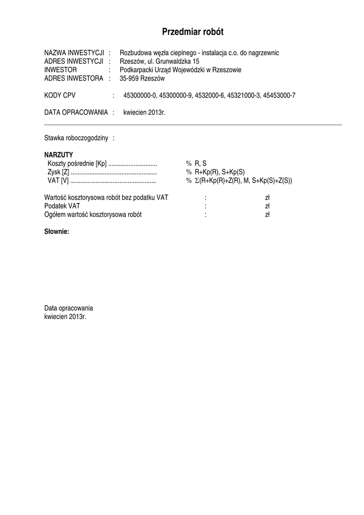 Przedmiar robót - Podkarpacki Urząd Wojewódzki