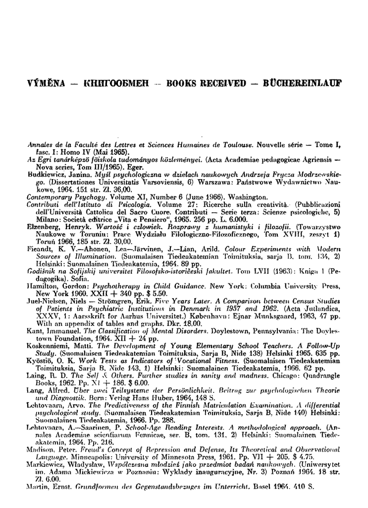 philosophica 34: Paedagogica-psyehologica VI) Státní p e d a g o g i c k é n a k l a d a t e l s t v í , Praha 1965.