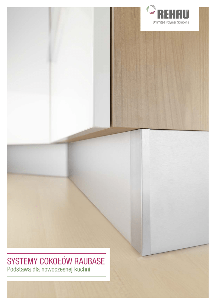 SYSTEMY COKOŁÓW RAUBASE Podstawa dla nowoczesnej kuchni SYSTEMY COKOŁÓW RAUBASE Przegląd oferty Systemy cokołów RAUBASE tworzą podstawę nowoczesnej kuchni. Składają się one z cokołów, profili narożnych, narożników zewnętrznych i wewnętrznych (90° und 135°), osłon końcowych oraz profili uszczelniających. Cokoły stanowią jednocześnie funkcjonalny oraz dekoracyjny element każdej kuchni. Obecnie w ofercie REHAU znajduje się 8 dekorów, które można zamawiać szybko i w niewielkich ilościach. 2 Miłość do szczegółu to niezbędny element w procesie projektowania kuchni. Na szczęście czasy mozolnego dobierania elementów o różnej powierzchni i strukturze minęły bezpowrotnie. Spójna kompozycja REHAU zapewnia możliwość tworzenia wyjątkowych projektów i akcentowania określonych detali przy zastosowaniu tych samych materiałów. Czy będzie to chłodne aluminium, czy luksusowa stal nierdzewna - REHAU zadba o to, aby żaluzje, panele boczne, blat, wnęka, korpus i cokół tworzyły idealnie skomponowaną, spójną wzorniczo całość. Z nami zrealizujesz każdy projekt! SPIS TREŚCI Systemy cokołów RAUBASE Przegląd oferty 2 Zalety w pigułce 4 Systemy cokołów RAUBASE Profil 100 mm Profil 125 mm Profil 150 mm Profil 225 mm 6 6 7 8 9 Akcesoria10 Przegląd artykułów 11 SYSTEMY COKOŁÓW RAUBASE Zalety w pigułce Wodoodporne Niezawodna uszczelka jako bariera dla wilgoci i brudu Uniwersalne metalowe klipsy do prostego mocowania cokołów 4 Już od ponad 15 lat systemy cokołów RAUBASE stanowią podstawę nowoczesnych projektów kuchennych. 400 Ponad dekorów w niestandardowych wykonaniach 4 wysokości nominalne dostosowane do stylu danej kuchni: 100, 125, 150 und 225 mm 5 SYSTEMY COKOŁÓW RAUBASE Profil 100 mm Cokół REHAU 100 mm Nr mat. 13538151001 13538151003 13538151005 13538251001 13538251004 13538251005 13538251007 13041351019 Opis Nr dekoru magic aluminium gładkie 157L magic aluminium szczotkowane 352L magic stal szlach. szczotkowana 683L srebrno-szary 7515 biały 2638 czarny 2639 dąb rustykalny 7167 chrom 1470L Sposób pakowania: 20 odcinków w kartonie, 4 m każdy AE / IE 135° Łącznik 19070651001 19070651003 19070651005 19070651017 19070651014 19070651015 19070651007 19070651019 19692191001 19692191003 19692191005 19692191017 19692191014 19692191015 19692191007 19692191019 19692291001 19692291003 19692291005 19692291017 19692291014 19692291015 19692291007 19692291019 Sposób pakowania: 20 sztuk w kartonie 6 Łącznik elastyczny (90°-135°) 19693591001 19693591003 19693591005 19693591017 19693591014 19693591015 19693591007 19693591019 13 AE / IE 90° 101,5 Końcówka prawa/lewa 19691991001 19691991003 19691991005 19691991017 19691991014 19691991015 19691991007 19691991019 SYSTEMY COKOŁÓW RAUBASE Profil 125 mm Cokół REHAU 125 mm Nr mat. 13538451001 13538451003 13538151005 Opis Nr dekoru magic aluminium gładkie 157L magic aluminium szczotkowane 352L magic stal szlach. szczotkowana 683L Sposób pakowania: 20 odcinków w kartonie, 4 m każdy AE / IE 90° AE / IE 135° Łącznik 19070671001 19070671003 19070671005 19692191001 19692191003 19692191005 19692291001 19692291003 19692291005 Łącznik elastyczny (90°-135°) 19693591001 19693591003 19693591005 126,5 Końcówka prawa/lewa 19691991001 19691991003 19691991005 Sposób pakowania: 20 sztuk w kartonie 13 7 SYSTEMY COKOŁÓW RAUBASE Profil 150 mm Cokół REHAU 150 mm Nr mat. 13538551001 13538551003 13538551005 13538651001 13538651004 13538651005 13041551019 Opis Nr dekoru magic aluminium gadkie 157L magic aluminium szczotkowane 352L magic stal szlach. szczotkowana 683L srebrno-szary 7515 biały 2638 czarny 2639 chrom 1470L Sposób pakowania: 18 odcinków w kartonie, 4 m każdy 151,5 Końcówka prawa/lewa 19692791001 19692791003 19692791005 19692791017 19692791014 19692791015 19692791019 AE / IE 90° AE / IE 135° Łącznik 19070691001 19070691003 19070691005 19070691017 19070691014 19070691015 19070691019 19692991001 19692991003 19692991005 19692991017 19692991014 19692991015 19692991019 19693091001 19693091003 19693091005 19693091017 19693091014 19693091015 19693091019 Łącznik elastyczny (90°-135°) 19693791001 19693791003 19693791005 19693791017 19693791014 19693791015 19693791019 13 Sposób pakowania: 20 sztuk w kartonie 8 SYSTEMY COKOŁÓW RAUBASE Profil 225 mm Cokół REHAU 225 mm Nr mat. 13538751003 13538751005 13041651019 Opis Nr dekoru magic aluminium szczotkowane 352L magic stal szlach. szczotkowana 683L chrom 1470L Sposób pakowania: 10 odcinków w kartonie, 4 m każdy 230,5 Końcówka prawa/lewa 19693191003 19693191005 19693191019 AE / IE 90° AE / IE 135° Łącznik 19070701001 19070701005 19070701019 19693391003 19693391005 19693391019 19693491003 19693491005 19693491019 Łącznik elastyczny (90°-135°) 19693891003 19693891005 19693891019 Sposób pakowania: 20 sztuk w kartonie 13 9 SYSTEMY COKOŁÓW RAUBASE Akcesoria Metalowa klamra osłony Nr mat. Materiał Kolor Nr dekoru Wersja Sposób pakowania 135586010 01 aluminium srebrny - 20 sztuk w kartonie klamra osłony Zalety: - koniec z mozolnym i czasochłonnym pozycjonowaniem elementów mocujących do stóp cokołu - optymalny docisk na powierzchnię uszczelki na osłonie cokołu dzieki odpowiedniej sile docisku klamer mocujących ze stali sprężynowej Wskazówka: Przy zastosowaniu klamry mocującej należy pozostawić szczelinę pomiędzy górną krawędzią osłony a podłożem posadzki wynoszącą min. 3 mm, max. 15 mm. Profile uszczelniające do cokołów REHAU* Nr mat. Materiał Kolor Nr. dekoru Wersja Sposób pakowania 16326061100 PP/PE bezbarwny 90002 profil 13 mm 907 m w kartonie 16367551100 PP/PE bezbarwny 90002 profil 16 mm 780 m w kartonie 16219741005 PP/PE bezbarwny 90002 profil 19 mm 650 m w kartonie * Profile uszczelniające do cokołów z innych materiałów i w innych wymiarach dostępne na zapytanie 10 W SKRÓCIE Przegląd oferty Cokoły REHAU Cokół REHAU 100 mm Sposób pakowania Mat.-Nr. Nazwa de