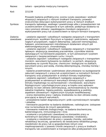 Nazwa: Lekarz – specjalista medycyny transportu Kod: 221239