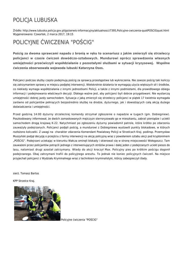 POLICJA LUBUSKA POLICYJNE ĆWICZENIA "POŚCIG"
