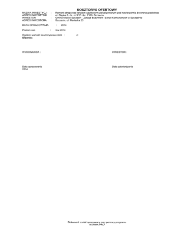 KOSZTORYS INWESTORSKI Ofertowy