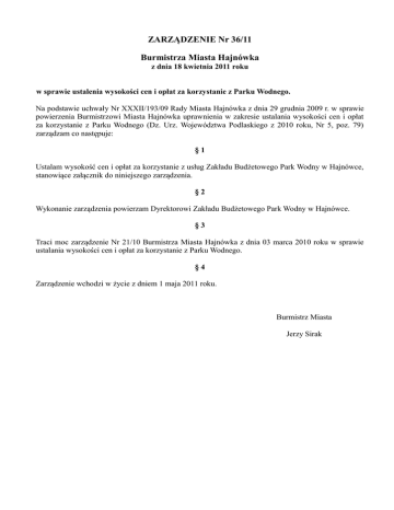 ZARZĄDZENIE Nr 36/11 Burmistrza Miasta Hajnówka