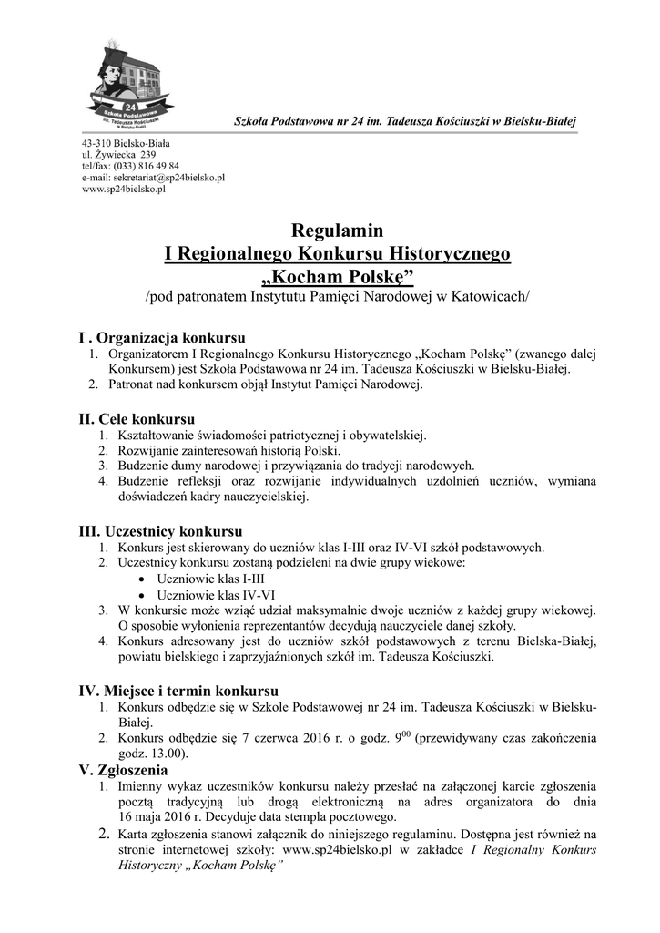 Regulamin I Regionalnego Konkursu Historycznego „Kocham Polskę”