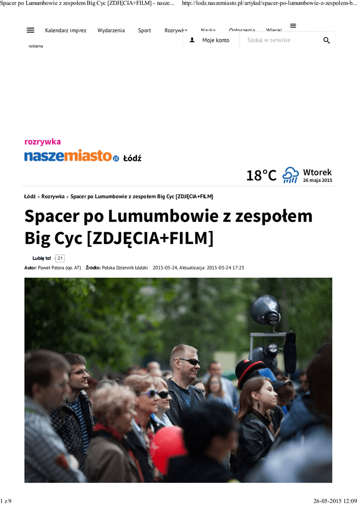 Spacer po Lumumbowie z zespołem Big Cyc [ZDJĘCIA+FILM] - nasze... Kalendarz imprez Wydarzenia Sport http://lodz.naszemiasto.pl/artykul/spacer-po-lumumbowie-z-zespolem-b... Rozrywka Nauka Ogłoszenia Więcej reklama rozrywka Łódź 18°C Wtorek 26 maja 2015 Łódź > Rozrywka > Spacer po Lumumbowie z zespołem Big Cyc [ZDJĘCIA+FILM] Spacer po Lumumbowie z zespołem Big Cyc [ZDJĘCIA+FILM] Lubię to! 21 Autor: Paweł Patora (op. AT) Źródło: Polska Dziennik Łódzki 2015-05-24, Aktualizacja: 2015-05-24 17:23 1 z9 26-05-2015 12:09 Spacer po Lumumbowie z zespołem Big Cyc [ZDJĘCIA+FILM] - nasze... Kalendarz imprez Wydarzenia Sport http://lodz.naszemiasto.pl/artykul/spacer-po-lumumbowie-z-zespolem-b... Rozrywka Nauka Ogłoszenia Więcej Zobacz galerię W niedzielę, 24 maja w ramach obchodów 70-lecia Uniwersytetu Łódzkiego, wycieczkę po osiedlu studenckim Lumumbowo poprowadzili Krzysztof Skiba i Jacek Jędrzejak z zespołu Big Cyc. reklama W wycieczce po Lumumbowie wzięli udział byli mieszkańcy akademickiego osiedla Uniwersytetu Łódzkiego, a także obecni studenci. Krzysztof Skiba opowiadał m.in. o studenckim radiu Kiks, o sposobach na to, by dostać się do akademika „na waleta”, czy o sposobach na dokuczenie funkcjonariuszom Służby Bezpieczeństwa. Liderzy grupy Big Cyc i inni absolwenci UŁ opowiadali m. in. o akcjach podejmowanych w stanie wojennym i happeningach Pomarańczowej Alternatywy. Spacer po charakterystycznych miejscach Lumumbowa urozmaiciły akcje happeningowe i piknik z grillowanymi kiełbaskami. Czytaj też: Big Cyc nagrał teledysk na 70-lecie Uniwersytetu Łódzkiego [WIDEO] Udostępnij Przygody Tomka Sawyera Tweetuj Komentarze GRA KIEROWCY 00751 /TREFL Twain Mark cena: 4,65 zł 6,20 zł Kicia Kocia nie może zasnąć Anita Głowińska -25% cena: 22,50 zł 30,00 zł -25% cena: 5,18 zł 6,90 zł -24% Czytaj także 2 z9 26-05-2015 12:09 Spacer po Lumumbowie z zespołem Big Cyc [ZDJĘCIA+FILM] - nasze... Kalendarz imprez Wydarzenia Sport http://lodz.naszemiasto.pl/artykul/spacer-po-lumumbowie-z-zespolem-b... Rozrywka Nauka Ogłoszenia Więcej Jarmark W Poznaniu Francuski w Łodzi wybierają Miss Umberto Eco doktorem honoris zgrabne teledysk na na Piotrkowskiej AWF 2015 causa pośladki? 70-lecie [zdjęcia] Uniwersytetu Zawodowi... Uniwersytetu Łódzkiego... Łódzkiego... Sponsorowane reklama Komentarze (0) Podane dane osobowe będą przetwarzane przez Polska Press Sp. z o.o. z siedzibą w Warszawie. Podanie danych jest dobrowolne. Pozostałe informacje na temat celu i zakresu przetwarzania danych osobowych oraz Twoich praw znajdziesz w regulaminie. Dodając komentarz akceptujesz regulamin. Zaloguj się / Zarejestruj się! DODAJ KOMENTARZ Brak komentarzy. Możesz być pierwszy! Więcej na temat: uniwersytet łódzki big cyc łódź krzysztof skiba łódź lumumbowo lumumbowo 2015 uniwersytet łódzki 2015 reklama 3 z9 26-05-2015 12:09 Spacer po Lumumbowie z zespołem Big Cyc [ZDJĘCIA+FILM] - nasze... Kalendarz imprez Wydarzenia Sport http://lodz.naszemiasto.pl/artykul/spacer-po-lumumbowie-z-zespolem-b... Rozrywka Nauka Ogłoszenia Więcej Wydarzenia dnia W Polsce zobaczymy najbardziej luksusowe samochody. Jak z filmów o Jamesie Bondzie i Fast&Furious Fangirl Quest: Cztery Finki podróżują śladami planów filmowych [zdjęcia] Kto pojawił się na finałowej gali w Cannes? [zdjęcia] Tyli, chudli, golili głowy... Tak gwiazdy zmieniały się dla roli [ZDJĘCIA] 3 Pasaż Róży przy Piotrkowskiej już otwarty Święto Ulicy Piotrkowskiej reklama 4 z9 26-05-2015 12:09 Spacer po Lumumbowie z zespołem Big Cyc [ZDJĘCIA+FILM] - nasze... Kalendarz imprez Wydarzenia Więcej na temat Sport http://lodz.naszemiasto.pl/artykul/spacer-po-lumumbowie-z-zespolem-b... Rozrywka Nauka Ogłoszenia Więcej reklama Polecamy Festiwal Łódź Miastem Kobiet 2015 - pierwszy dzień wydarzenia [ZDJĘCIA] 5 z9 26-05-2015 12:09 Spacer po Lumumbowie z zespołem Big Cyc [ZDJĘCIA+FILM] - nasze... Kalendarz imprez Wydarzenia Sport http://lodz.naszemiasto.pl/artykul/spacer-po-lumumbowie-z-zespolem-b... Rozrywka Nauka Ogłoszenia Więcej Noc Kobiet w Łodzi. Spotkania ze znanymi kobietami, warsztaty i pokazy artystyczne Konkurs! Wygraj bilety na koncert Selah Sue w Wytwórni! QUIZ: Czy rozpoznajesz te znane osoby? Popularne 2 Bieg ulicą Piotrkowską. Rossmann Run 2015 [ZDJĘCIA] 5 Internet na swój sposób skomentował wybory. Zobaczcie MEMY 14 Wybory prezydenckie 2015: Sztab Bronisława Komorowskiego w Łodzi [ZDJĘCIA+FILM] 19 Andrzej Duda prezydentem. OKŁADKI DZIENNIKÓW po wyborach prezydenckich 1 Wybrano Miss Polonia Studentek Łodzi 2015 [ZDJĘCIA+FILM] Komentowane 109 Wyniki wyborów prezydenckich 2015: zwycięzcą Andrzej Duda 19 Andrzej Duda prezydentem. OKŁADKI DZIENNIKÓW po wyborach prezydenckich 17 Wybory prezydenckie 2015. Oficjalne wyniki z Łodzi i województwa reklama 6 z9 26-05-2015 12:09 Spacer po Lumumbowie z zespołem Big Cyc [ZDJĘCIA+FILM] - nasze... Kalendarz imprez Wydarzenia Podobne materiały Sport http://lodz.naszemiasto.pl/artykul/spacer-po-lumumbowie-z-zespolem-b... Rozrywka Nauka Ogłoszenia Więcej 70-lecie Uniwersytetu Łódzkiego. Spacer po Lumumbowie z Krzysztofem Skibą... 70 - lecie Uniwersytetu Łódzkiego: Od Umberta Eco do Big Cyca Umberto Eco doktorem honoris causa Uniwersytetu Łódzkiego [ZDJĘCIA] Big Cyc nagrał teledysk na 70-lecie Uniwersytetu Łódzkiego [WIDEO] reklama reklama Szukaj opon według rozmiaru Szerokość Profil Średnica Producent Sezon Typ pojazdu Szukaj reklama 7 z9 26-05-2015 12:09 Spacer po Lumumbowie z zespołem Big Cyc [ZDJĘCIA+FILM] - nasze... Kalendarz imprez Wydarzenia O naszemiasto.pl Marketing Sport Reklama http://lodz.naszemiasto.pl/artykul/spacer-po-lumumbowie-z-zespolem-b... Rozrywka Nauka Ogłoszenia Gazeta bezpłatna naszemiasto.pl Więcej Kontakt Więcej Serwisy branżowe: Ogłoszenia Mieszkania Łódź Domy Łódź Motoryzacja Samochody Łódź Praca Praca Łódź Ogłoszenia drobne Serwisy partnersk