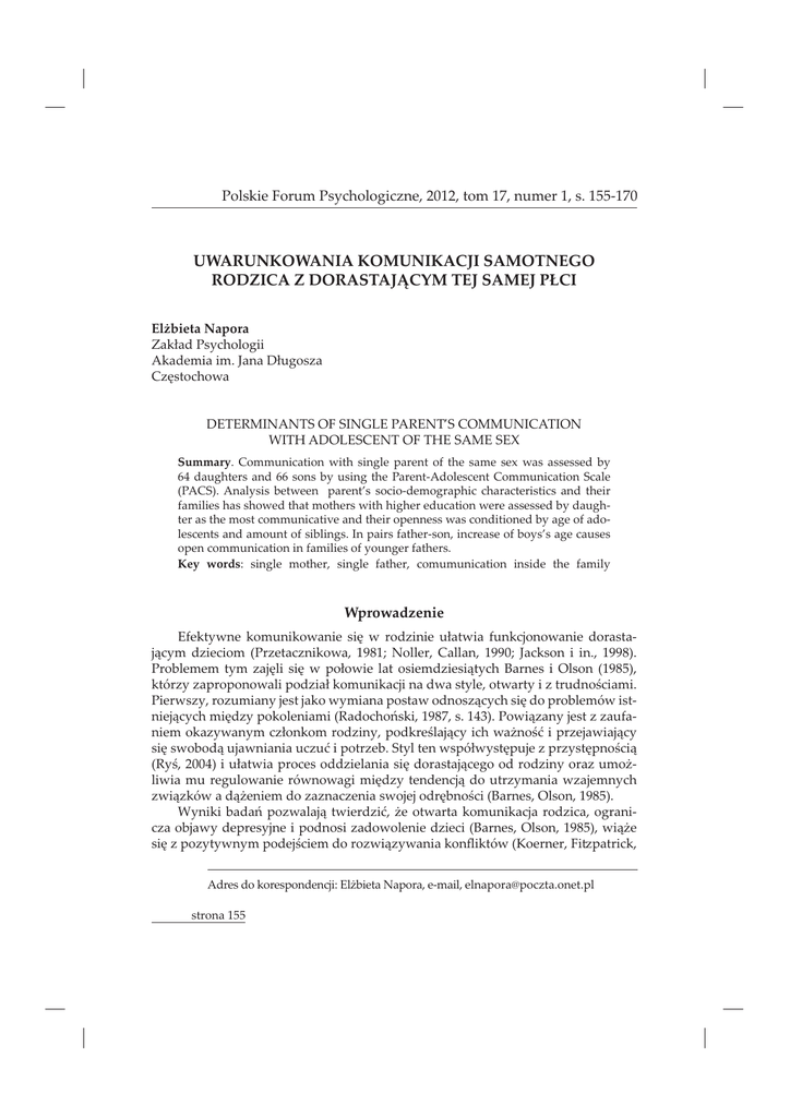 ȱȱ¢£ǰȱŘŖŗŘǰȱȱŗŝǰȱȱŗǰȱǯȱŗśśȬŗŝŖ UWARUNKOWANIA KOMUNIKACJI SAMOTNEGO ȱȱ&ȱȱȱR Čȱ Ùȱ¢ ȱǯȱȱÙ£ £¿ ȱȱȱȂȱȱ ȱȱȱ ȱȱ Summaryǯȱ ȱ ȱ ȱ ȱ ȱ ȱ ȱ ¡ȱ ȱ ȱ ¢ȱ ŜŚȱ ȱ ȱ ŜŜȱ ȱ ¢ȱ ȱ ȱ Ȭȱ ȱ ȱ ǻǼǯȱ ¢ȱ ȱ ȱ Ȃȱ Ȭȱ ȱ ȱ ȱ ȱȱ ȱȱȱ ȱȱȱ ȱȱ¢ȱȬ ȱȱȱȱȱȱȱȱ ȱȱ¢ȱȱȱȬ ȱȱȱȱǯȱȱȱȬǰȱȱȱ¢Ȃȱȱȱ ȱȱȱȱȱ¢ȱǯ Key wordsDZȱ ȱ ǰȱ ȱ ǰȱ ȱ ȱ ȱ ¢ Wprowadzenie ¢ ȱ ȱ ¿ȱ ȱ £ȱ Ù ȱ ȱ Ȭ ¢ȱ £ȱ ǻ££ ǰȱ ŗşŞŗDzȱ ǰȱ ǰȱ ŗşşŖDzȱ ȱ ȱ ǯǰȱ ŗşşŞǼǯȱ ȱ ¢ȱ £¿ȱ ¿ȱ ȱ Ù ȱ ȱ £¢ȱ ȱ ȱ ȱ ǻŗşŞśǼǰȱ ࣢ȱ£ ȱ£Ùȱȱȱ ȱ¢ǰȱ ¢ȱȱ£ȱïǯȱ £¢ǰȱ£¢ȱȱȱ ¢ȱ ȱ£¢ȱ¿ȱȱà ȱȬ ¢ȱ¿£¢ȱȱǻÚǰȱŗşŞŝǰȱǯȱŗŚřǼǯȱ £¢ȱȱ£ȱ£Ȭ ȱ£¢ ¢ȱ£Ùȱ£¢ǰȱï¢ȱȱ Čï°ȱȱ£ ¢ȱ ¿ȱ ȱ ȱ£°ȱȱ£ǯȱ¢ȱȱ àÙ ¢¿ȱ£ȱ£¢¿ïȱ ǻ¢ïǰȱŘŖŖŚǼȱȱÙ ȱȱ£ȱ¿ȱȱȱ£¢ȱ£ȱČȬ ȱ ȱ ȱ à ȱ ¿£¢ȱ ȱ ȱ £¢ȱ £¢ȱ £ £à ȱȱČȱȱ£££ȱ ȱ¿ïȱǻǰȱǰȱŗşŞśǼǯȱ ¢ȱ Úȱ £ ȱ £°ǰȱ Čȱ ȱ ȱ £ǰȱ Ȭ £ȱ ¢ȱ¢ȱȱȱ£ ȱ£ȱǻǰȱǰȱŗşŞśǼǰȱ Čȱ ¿ȱ£ȱ£¢¢ ¢ȱïȱȱ£ £¢ ȱĚà ȱǻǰȱĵǰȱ ȱȱDZȱČȱǰȱȬǰȱȓ£ǯǯ strona 155 ŗşşŝǼǰȱ ȱ£ àȱ£ȱ ïȱȱ¢ ȱ£ȱȱ£ȱ ȱ ǻǰȱ ǰȱ ŗşŝśǼǰȱ Čȱ Ùï°ȱ ȱ £ Úȱ £¿£¢ȱ ǻǰȱȱȱǰȱŗşşŝǼȱȱ£Úȱǻǰȱ££ǰȱǰȱŗşşŝǼǯȱȱ ȱ ¢ȱ ȱ ȱ £ȱ ïǰȱ £ ȱ ¿ȱ ¢ ïȱ ȱ ȱǰȱ ¢¢ ȱ¿ȱ£ȱȱǻÚǰȱŗşŞŝǼǯȱČȱ °ȱ¿ȱ ȱȱ ȱ£ ȱ£ȱȱ£ǰȱȱ ȱǯȱȱ¿ȱ ȱȱ¢ȱÙà ï°ȱȱČǰȱÙȱ¢¢Ȭ ȱ£ Úȱ£ȱǻ¢ǰȱŗşşŚǼǯȱȱ£ȱȱȱ£ȱïȬ ǰȱàȱȱ ¢£¢¢ ȱ££ȱ£à ǰȱȱČȱ Ù¢ ȱ¢ ȱȱ ȱ£ȱ¢ǰȱȱ¢¢¢£ȱǻǼȱǻǰȱ¢ǰȱŗşśşǼǯȱ¿ȱȱ ¢ȱȱȱȱȱǻŗşŞśǼȱ£ȱȱ¢ȱ ČǰȱČȱ £¿Ȭ ȱȱ ȱȱȱ¿£¢ȱ£ȱȱ¢ȱ£°ȱǻȱȬ ȱȱǰȱǼǯȱ £¿ȱČȱȱȱǻȱǼǰȱ ¢£¢¢ ȱ££ȱÙ£Čȱȱǰȱ¢£ǰȱ ¢Č¢ȱ ȱ £ǰȱ¢ȱ °ȱȱȱ¿ǯ ȱ Čȱ ȱ ȱ £ £ȱ £ȱ ȱ £ȱ ïȱ £ȱ ȱ ȱ £ȱ Čȱ ǰȱ àȱ ¢£ȱ ȱ ǰȱ ȱ ȱ ȱ Ù¢ ȱȱ ï ï°ȱ£ȱǻ¢ȱȱǯǰȱŘŖŖŘǼǰȱȱà ȱ£ȱ¢ȱ ǻ ǰȱǰȱŗşşŞǼǰȱÙï°ȱȱ£¿£ïȱǻǰȱȱȱǰȱŗşşŝǼǯȱȬ £ ȱ¢ȱ£ȱà ȱ£ȱ£ǰȱ £ȱȱȱȬ à ȱȱȱȱ£ȱ£ȱïȱ£ȱà ïȱǻǰȱǰȱ ŘŖŖŚǼǯȱ ȱ ȱ ¢à ȱÚǰȱïȱ ȱȱ£ȱ£°ȱ£Č¢ ȱ ¿ȱà ȱČȱǰȱȱÙ£¢ȱ¿ȱÙȱïȱï ¿ȱȱ£ȱǻȬ Úǰȱ ŗşŞŝǰȱ ǯȱ ŗŚŚǼǯȱ ȱ ¢£ȱ ȱ ¿ȱ ȱ £ȱ Ȭ ȱȱȱ £ï°ȱ£ȱ£¢ ȱ £ȱȱČ¢ȱ ǻ¢ǰȱ ŗşşŘǼǯȱ££ȱ£¢ ȱȱȱČ£ȱ¢ȱ£ȱǰȱ°ȱ£ȱȱ¢ǰȱ £¿ȱȱȱ£ ȱ ȱȱȱ ïȱȱȱ¢¢ȱǻ ǰȱ ŗşŞŜǰȱǯȱŝŗǼǯȱȱȱ£ȱ ȱ££ȱ£ Ùȱ¿ȱ£¢ȱǻŗşŞŖǼǰȱ ȱÚȱȱȱȱ£ȱ£ǯȱȱ ÙǰȱČȱȱȬ £ ¢ȱȱȱǰȱ£ £ȱ£ȱ£ȱ£ǰȱȱȱȱ £ȱ¢ȱ¿ïȱȱ¢ȱǰȱČȱȱȱǯȱȱ ȱ£ȱ£ȱ¢ȱȱȱ£ÙČ¢ǰȱȱà¢ȱ Ù¢Ȭ ȱ ȱ £¢à ǯȱ ¢£ȱ £ àȱ ¿ȱ ȱ £¢ȱ Ù¢ȱ ȱ ££ȱ £ £ȱ ¿£¢ȱ Ùȱ £ȱ ȱ ǰȱ ȱ ȱ ïȱ ȱ ¿£¢ȱǯȱǰȱ Čȱ£ȱ Č£ȱ£ȱ ȱȱ£ȱ£ȱǻȬ ǰȱǰȱŗşşŗǼȱ£ȱȱ ȱÙǰȱȱ£Č ȱȱ ȱȱ£ȱàȱ ǻ ǰȱŗşŞŖǼǰȱ ȱà ȱ£ȱ¢ǯȱȱ¢ȱ¢ȱ à ǰȱȱȱ ȮȱàȱȱÙ£ȱČȱȱȮȱàȱǻǰȱǰȱŗşşŝǼǰȱàȱČ¢ȱȱ£Ȭ £¢ȱ ȱČ¢ȱȱǻǰȱǰȱŗşşŖǼǰȱȱȱ¢ȱȱ ȱ £ȱǻ£DZȱ£ǰȱŗşşŗǼǯ £¢ȱ¢ȱ¿ȱȱȱ££ȱ ¿£ȱȱ£ȱàǰȱ ȱ £¢ȱ Ù¢ ȱȱ£ àȱ ¢ȱ£ȱ ïȱȱà ȱ ȱ£Ȭ ȱǻ Ȭǰȱ ǰȱŗşŞŝǼǰȱÙ £ȱȱ¢£ȱǻǰȱŗşşŚǼǰȱ strona 156 ȱ ¢ȱ £¢ȱ £ȱ Ù£¢ȱ £ ȱ ǻǰȱ ŘŖŖşǼǯȱ ȱ ȱ¢ȱ£ £ȱ£ȱ¿ȱȱ¿ǰȱàȱ£¢ȱà¿ȱȬ Ùïǰȱ£ȱ£¢ £ȱȱȱȱ¢ ïȱǻǰȱŘŖŖŖǰȱǯȱŗşŝǼǯȱ¢Ȭ ȱ£ȱȱ¢£ȱČ¢ȱȱȱà ȱ£ȱÙȱ£ ǰȱ Ȭ £ȱȱ£ȱ£ ¢ȱ£Č ȱǻǰȱǰȱŗşşŝǼǰȱ°ȱ£¿ȱ ȱ ȱ ¿£ȱïȱĚà ȱ£ȱàȱČȱ£ȱ¢ȱǻǰȱǰȱŗşşŖǼǯȱ ȱ Ù ȱȱ£ȱàǰȱ ¢ȱ£ȱ ïȱȱ¢Ȭ ȱǰȱ££ȱȱ¿£¢ȱȱ£Ùȱȱ£ ȱ£ £ȱ ǻǰȱŘŖŖŖǼǯȱȱ£ ȱ£ £ȱȱ£¢ £ȱȱ£¢àÙȱ ȱȱÙȱǻȬǰȱŗşşŚǼǰȱČȱȱ¢¢ȱǻǰȱŘŖŖŖǼǰȱ ££ȱ ȱČ¢ ȱǻȱȱǯǰȱŘŖŖśǼǯȱȱ £ȱ¿ȱ¿£¢ȱ£ȱȱ¢ȱȱȱÙǰȱ ȱ£¢Ȭ £°ȱ¿ȱȱȱȮȱ¢ǯȱȱ£ȱ¢ȱ ¢ǰȱČȱȱ£ȱ¢ȱ ȱ££ȱȱ¿Č£¢£¢ȱ£ȱ¿Č£¢£ȱǻ¢ǰȱǰȱŘŖŖřǼȱȱȱ¢ȱ Ù¢ ȱȱ£ àȱȱ¿ȱÙȱǻǰȱŗşŝŜǼǯȱï°ȱà ȱ£ȱȱ ȱ Č¢ȱ Ċȱȱ¢ȱ ȱ£¢£Ùïȱȱ£ ȱ£ȱȱ £ȱ¢ȱǻĴ¢ǰȱǰȱŗşşřǼǰȱ£ȱ ¢£ÙȱȱÙïȱȱ£ Úȱ £¿£¢ȱǻ ǰȱǰȱǰȱŗşşŞǼǯȱȱ Studia empiryczne skupione na negatywnych aspektach relacji ojca z synem £ǰȱČȱ£ £ȱ ȱà¢ȱ ¢¿ȱ¢ȱ¢ȱȱ¢Ȭ ¢ïȱÙà ǰȱ£ȱ£Ùï°ȱȱ£¢ȱǻ¢ǰȱǰȱŘŖŖřǼǯȱ¢ȱ ȱȱ ǰȱČȱ¢ȱ ȱ£¢£Ùïȱ£ȱȱ£ȱ¿ȱ ȱȱȱǻ¢ǰȱŗşşŗǼǯȱ ȱȱȱǻŗşşŝǼȱ£ ȱȱ£ ȱ ¢ȱ¢ ȱȱ ǻȬ¢ȱǼǰȱȱȱȱǻŗşşşǼȱà ȱȱ£¢ ę Ȭ ¢ȱȱǻęȱǼǰȱȱȱȱȱǻŗşşŚǼȱ ǰȱČȱ ȱ ¢Ȭ ȱ¿ȱ¢°ȱȱÙ¢ȱ ȱǻ ȱǼȱ ȱČ¢ȱ£¢ǯȱ£Čȱ ȱǰȱȱȱ£ ȱ£ȱ£ ǰȱ£ȱ ȱČȱ °ȱ £ȱ ȱ ¿£ïȱ ¢Úȱ Ùà ȱ ȱ Ù¢ȱ ¿Č£¢£ȱ ǻǰȱǰȱŗşşşǼǯȱȱ ǰȱ ȱ à¢ȱ ¢ȱ řŖŖȱ Čà ȱ ȱ ȱ ¿ǰȱ àȱ ¢ȱ £°ȱ ȱ à ȱ ȱ £ȱ ȱ ǰȱ £Ù¢ǰȱ Čȱ ¿£ï°ȱ £ȱ ȱ £Ùȱȱï°ȱȱ ¢Čȱ£°ȱǻǰȱǰȱŗşşŘǼǯȱ ǰȱ ¿Ȭ £ï°ȱ¿Č£¢£ȱȱ£ȱ ¢ ¢ °ȱ ȱ¢à ȱȱȱȱ°ȱȱČȱ ȱ ǯȱȱȱȱ¿Č£¢Ċȱ ȱ£Ùï°ǰȱ££ ȱȱ£ Ȭ ȱ£ȱ£ ȱ¢à ǰȱ ȱȱ¿ïȱ ȱ¢£ǯȱ £ïǰȱ ȱ ¢à ȱ £¢£Ùȱ ¿ȱ ȱ ¢ȱ à ȱ £ȱ ǰȱ ࣢ȱ ȱ ȱ Ùȱ ȱ ȱ £ǰȱ ȱ ȱ ¿ȱ £ǰȱ ȱ ȱ ȱǻǰȱǰȱŗşşşǼǯȱ¢ȱÚȱŗŘŖȱ£à ǰȱ ïàȱà¢ȱ ȱ śŖƖȱ ȱ Ù¢ǰȱ £ǰȱ Čȱ ŗśƖȱ £ Ùȱ àȱ ȱ ȱïȱ£ȱȱȱ¢ȱȱ£¢£Ùȱ¿ȱȱȱÙ ȱ£ ȱ £ȱȱ¢ȱǻǰȱŘŖŖşǰȱǯȱŘŚşǼǯȱ ¢ȱ£ȱ ¢Č£ǰȱČȱȱȱȮȱàȱȱ£ǰȱȱȱȮȱ¢ȱ Čȱ ȱČ¢ȱȱ¢ȱ£ £à ǯȱȱČȱȱȱ£ȱ¢ȱȱ Čǰȱȱȱ ȱȱ
