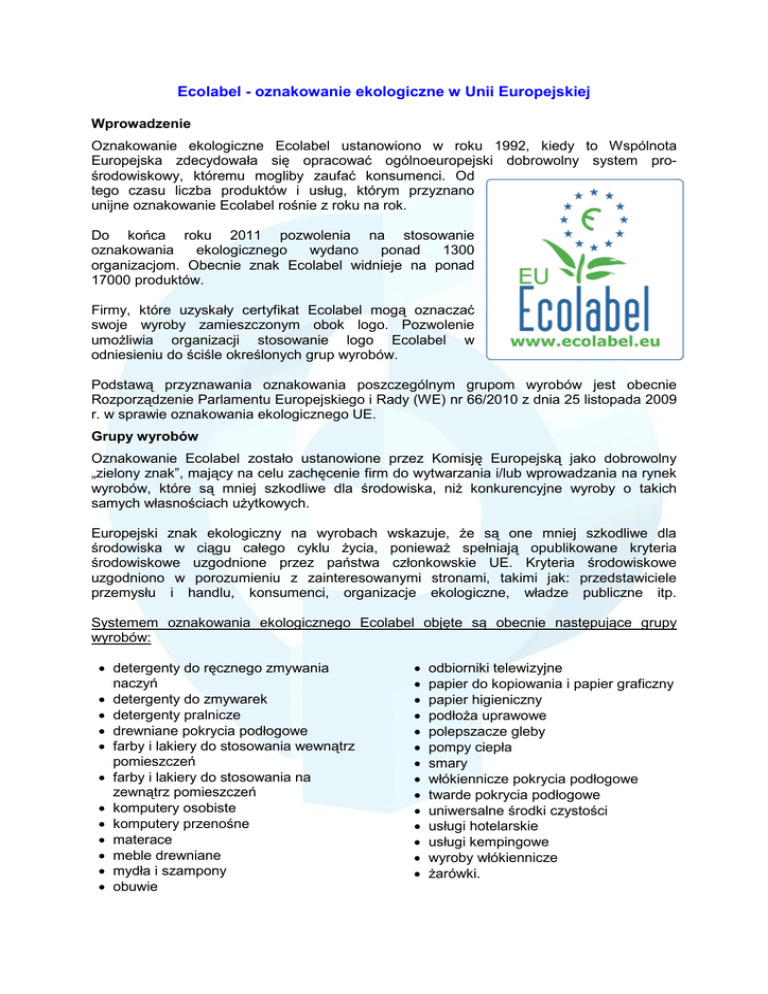 Ecolabel - oznakowanie ekologiczne w Unii Europejskiej