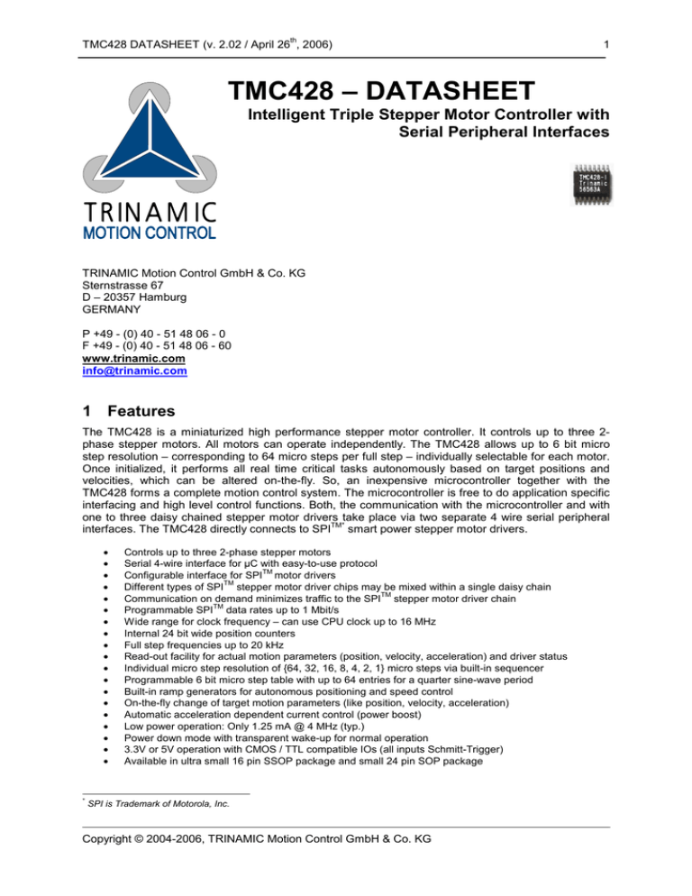 TMC428 DATASHEET (v. 2.02 / April 26th , 2006)