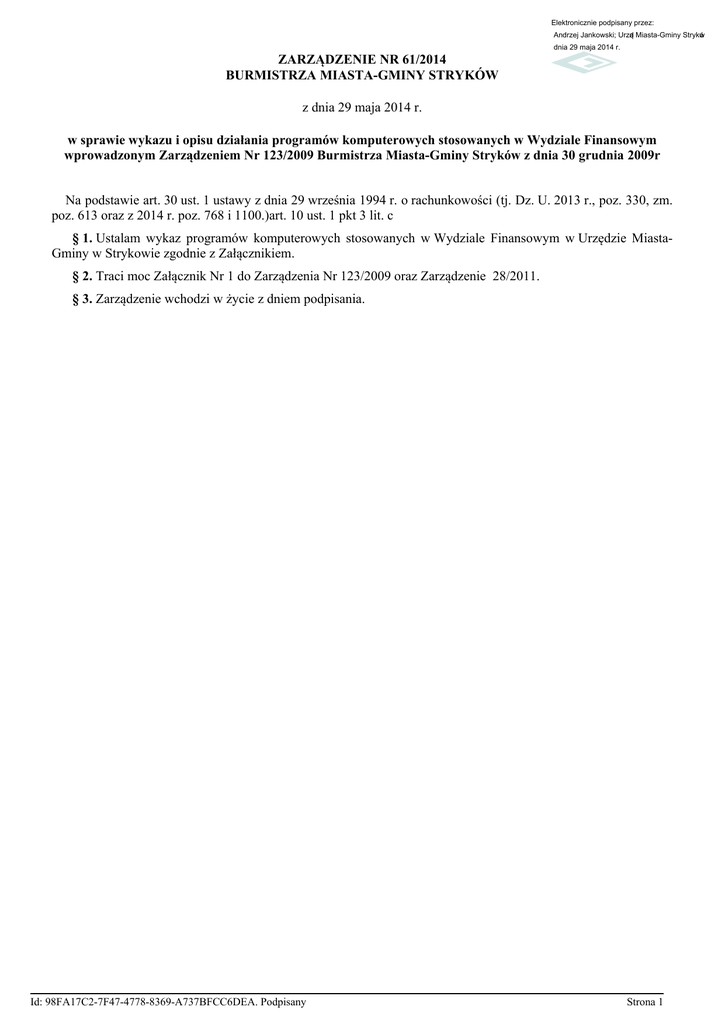 Zarzadzenie Nr 61/2014 z dnia 29 maja 2014 r.