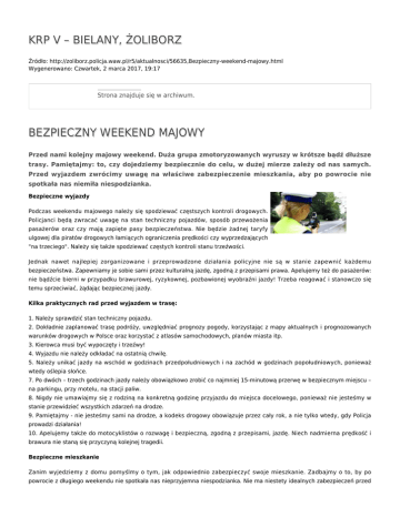 KRP V – BIELANY, ŻOLIBORZ BEZPIECZNY WEEKEND MAJOWY