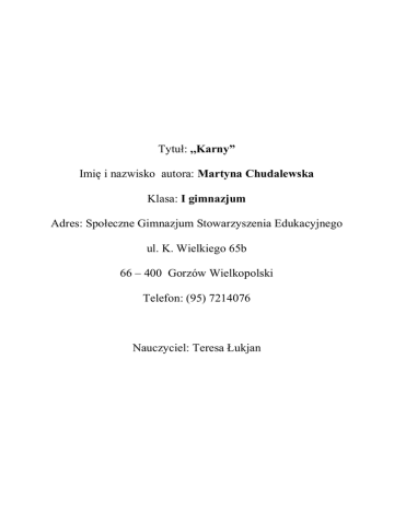 Tytuł: ,,Karny” Imię i nazwisko autora: Martyna Chudalewska Klasa: I