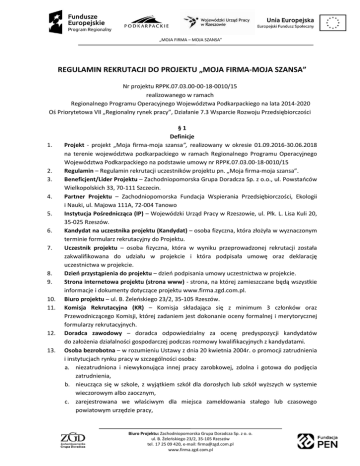 REGULAMIN REKRUTACJI DO PROJEKTU „MOJA FIRMA