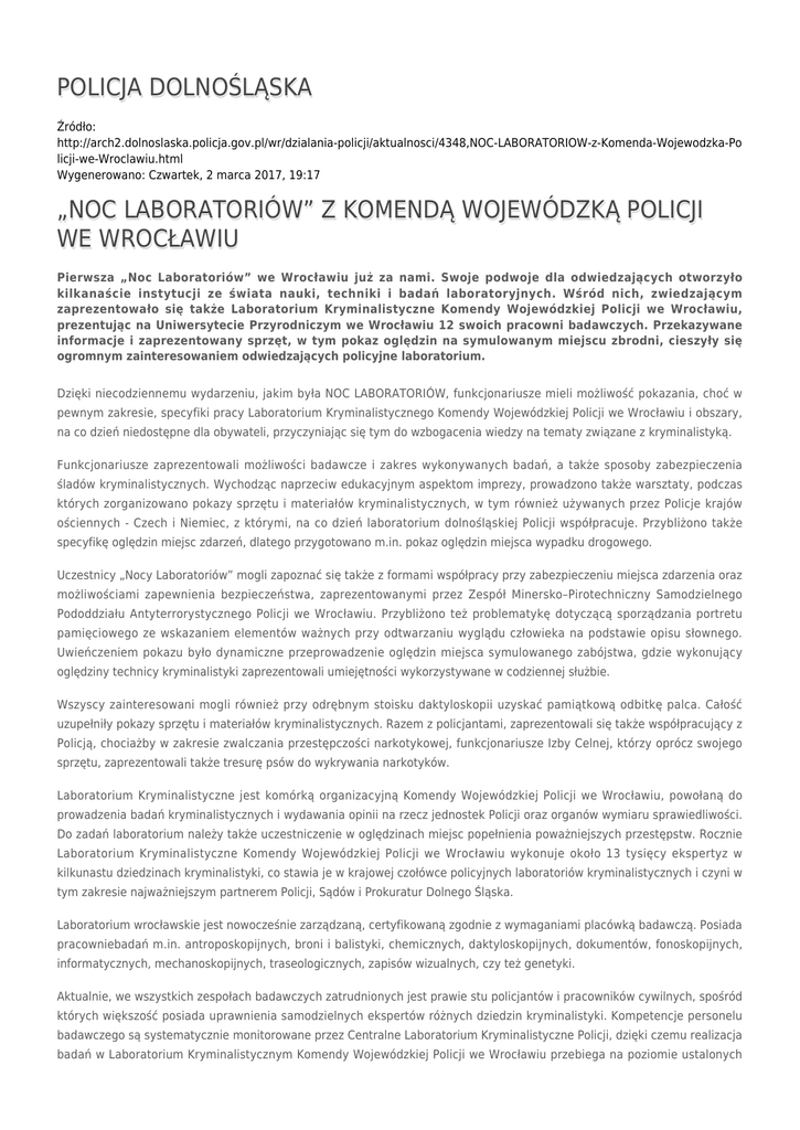 „noc laboratoriów” z komendą wojewódzką policji we wrocławiu