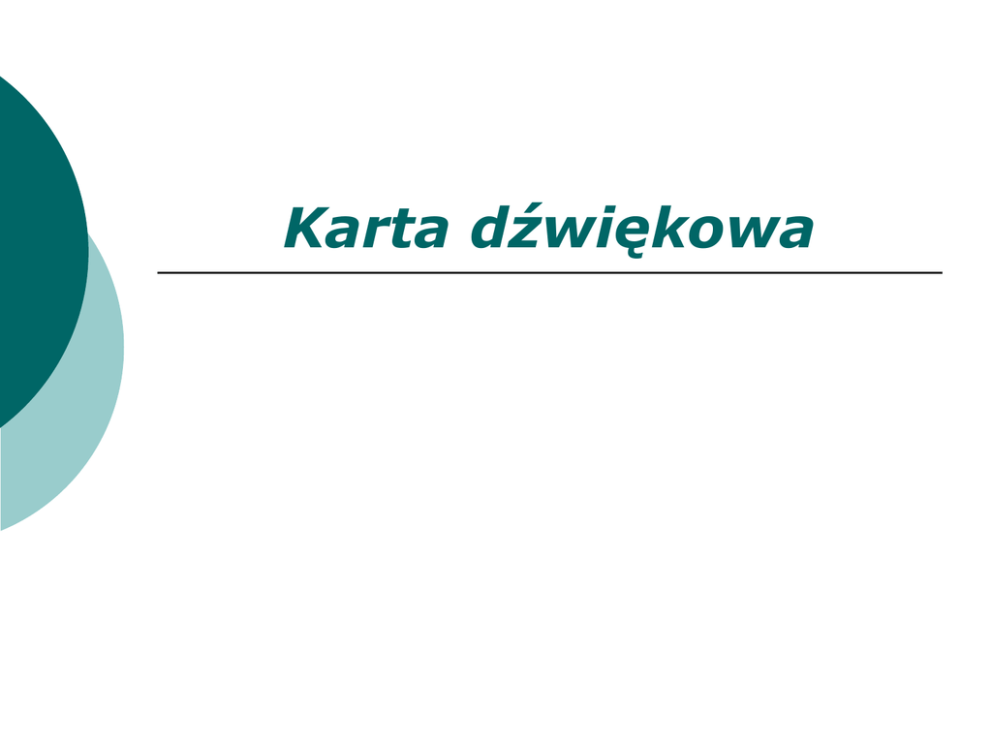 Karta dźwiękowa Spis Treści Co to jest? Budowa Próbkowanie Synteza FM Synteza WT MIDI Karta dźwiękowa Komputerowa karta rozszerzeń, umożliwiająca rejestrację, przetwarzanie i odtwarzanie dźwięku. Poprawnym jest też równie często stosowany termin karta muzyczna Budowa Karta dźwiękowa zbudowana jest: - Generator dźwięku - Przetworniki A/C i C/A - Bufor - Mikser dźwięku - Wzmacniacz sygnałów wyjściowych - Złączy wejściowych i wyjściowych - Interfejs do komputera - Interfejs MIDI Próbkowanie Jest to parametr, na który składa się częstotliwość i głębokość próbkowania. Im wyższa częstotliwość (podawana w kilohercach- kHz), tym większa wierność, czystość i nasycenie odtwarzanego dźwięku. Synteza FM Karty muzyczne nie tylko nagrywają i odtwarzają gotowe dźwięki, lecz również tworzą je samodzielnie za pomocą syntezy FM (modulacji częstotliwości). Pierwszym chipem muzycznym wykorzystującym syntezę FM był układ OPL2 firmy Yamaha. Chip ten nie był przeznaczony dla komputerów, lecz podobnie jak OPL1 został opracowany pod kątem organów elektronicznych. Gdy jednak model OPL2 odniósł ogromny sukces rynkowy, firma Yamaha skonstruowała specjalnie dla kart dźwiękowych kolejny układ – OPL3. Początkowo na rynku dostępne były tylko dwa chipy FM (OPL 2 i 3), ale w 1995 r. patent na syntezę modulacji częstotliwości uległ przedawnieniu. Od tego czasu na kartach dźwiękowych instaluje się różne chipy, w większości kompatybilne z OPL3, a więc również ze standardem Sound Blaster. Wszystkie układy FM działają na tej samej zasadzie: za pomocą prostych funkcji matematycznych generują krzywe drgań, które tylko w przybliżeniu imitują działanie oryginalnych instrumentów muzycznych. W każdym przypadku umożliwiają jednak odtwarzanie plików MIDI. Pliki te – podobnie jak tradycyjna partytura – zawierają bowiem tylko opisy dźwięków instrumentów i efektów, a nie autentyczne dźwięki. Synteza WT Z uwagi na sztuczne brzmienie generowanych dźwięków synteza FM nie nadaje się do zastosowań ogólnych, np. realistycznego naśladowania prawdziwych instrumentów. Z tego tez względu używa się techniki syntezy wavetable (WT), znanej też pod nazwą AWM (Advanced Wave Memory). Zasada działania syntezy WT jest bardzo prosta. W celu uzyskania na przykład brzmienia gitary chip muzyczny nie generuje sztucznego dźwięku, lecz odtwarza oryginalny dźwięk instrumentu, nagrany wcześniej w studiu. W praktyce nie ma jednak możliwości zapisania w pamięci wszystkich dźwięków generowanych przez 128 instrumentów MIDI. Chip muzyczny musi więc często obliczać wysokość i długość dźwięków na podstawie wzorcowych próbek. Z zadaniem tym poszczególne karty WT radzą sobie bardzo różnie. W niektórych modelach można np. uzyskać lepsze brzmienie instrumentów smyczkowych w innych instrumentów dętych. Naprawdę dobre brzmienie dla wszystkich odmian muzyki oferują jak dotąd tylko drogie karty profesjonalne. Niektóre karty umożliwiają użycie dla każdej częstotliwości oddzielnych próbek, jednak zwiększa to zużycie pamięci (dlatego profesjonalne karty mogą posiadać nawet setki megabajtów pamięci RAM, którą można rozszerzać), oraz wymaga czasochłonnego procesu rejestracji próbek w studiu. MIDI Koncepcja cyfrowego złącza instrumentów muzycznych (MIDI), wprowadzona we wczesnych latach 80., zrewolucjonizowała rynek, przerastając z czasem oczekiwania swych twórców. MIDI pozwala na wymianę informacji i synchronizację sprzętu muzycznego za pomocą standardowych komunikatów, tworząc spójny system sterowania zestawem muzycznym. Komunikaty MIDI mogą być proste (np. włącz dźwięk pianina na 5 sekund), lub złożone (np. zwiększyć napięcie wzmacniacza VCA w generatorze 6, aby dopasować częstotliwość do generatora nr 1). Należy tutaj pamiętać, że MIDI nie przesyła dźwięku, lecz informacje o nim (i nie tylko). Na przykład muzyk w czasie koncertu naciśnięciem klawisza może wydobyć nie tylko dźwięk, ale również może synchronicznie sterować błyskami światła, sekwenserami, modułami brzmieniowymi itp. – oczywiście pod warunkiem, że wymienione urządzenia będą zgodne ze standardem MIDI. Posiadając w komputerze kartę dźwiękową FM czy też WT, mamy, praktycznie rzecz biorąc, do czynienia z modułem brzmieniowym syntezatora muzycznego. Komunikację z owym modułem zapewnia port MIDI oraz programy zwane sekwencerami. Sekwencery umożliwiają też edycję zapisu cyfrowego MIDI w postaci standardowych plików (z rozszerzeniem MID). Specyfikacja MIDI umożliwia sterowanie 16 urządzeniami MIDI jednocześnie. Sekwencer łączy funkcję magnetofonu wielośladowego i pulpitu mikserskiego. Poszczególne partie instrumentów nagrywa się na ścieżkach (może ich być 128 i więcej). Niezaprzeczalną zaletą MIDI jest oszczędność pamięci – skoro przesyłane są tylko dane dotyczące dźwięku, minuta muzyki wymaga zaledwie około 20 KB danych. MIDI ma pod tym względem ogromną przewagę nad cyfrową techniką zapisu dźwięku, przetworzonego przez konwertery analogowo-cyfrowe na twardym dysku. Pierwszą implementacją standardu MIDI na platformie PC był interfejs MPU-401 firmy Roland, później pojawiła się specyfikacja MT32, wreszcie General MIDI, wprowadzający jednolity rozkład brzmień.