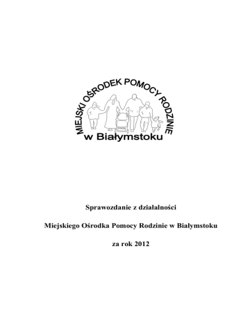 Sprawozdanie z działalności Miejskiego Ośrodka Pomocy Rodzinie w Białymstoku za rok 2012 Spis treści Wstęp .............................................................................................................................................................. I. POMOC OSOBOM I RODZINOM BĘDĄCYM W TRUDNEJ SYTUACJI ŻYCIOWEJ ................ 1. Przyczyny korzystania z pomocy społecznej .................................................................................... 2. Działalność decyzyjna Ośrodka ........................................................................................................ 3. Świadczenia z pomocy społecznej ……………………………………………………………….. 3.1. Zadania własne gminy ...................................................................................................................... 3.1.1. Świadczenia pieniężne ………………………………………………………………………. 3.1.2. Składki na ubezpieczenie zdrowotne ………………………………………………………... 3.1.3. Pomoc państwa w zakresie dożywiania ..................................................................................... 3.1.4. Usługi opiekuńcze i specjalistyczne usługi opiekuńcze ............................................................. 3.1.5. Gminny program osłonowy........................................................................................................ 3.1.6. Praca socjalna ............................................................................................................................ 3.2. Zadania zlecone z zakresu administracji rządowej realizowane przez gminę .................................. 3.2.1. Specjalistyczne usługi opiekuńcze, w miejscu zamieszkania dla osób z zaburzeniami psychicznymi ............................................................................................................................ 3.3. Zadania własne powiatu .................................................................................................................... 3.3.1. Poradnictwo specjalistyczne ..................................................................................................... 3.3.2. Domy pomocy społecznej ......................................................................................................... 3.3.3. Ośrodek Interwencji Kryzysowej ............................................................................................... 3.4. Zadania z zakresu administracji rządowej realizowane przez powiat .............................................. 3.4.1. Środowiskowy Dom Samopomocy ........................................................................................... 4. Wspieranie rodziny i system pieczy zastępczej ................................................................................ 4.1. Asystent rodziny ............................................................................................................................... 4.2. Rodziny Zastępcze ............................................................................................................................ 4.3. Usamodzielnianie wychowanków .................................................................................................... 4.4. Mieszkania chronione ....................................................................................................................... 4.5. Kierowanie do placówek ................................................................................................................... 4.6. Zadanie realizowane przez MOPR w Białymstoku, jako organizatora rodzinnej pieczy zastępczej II. ŚWIADCZENIA OPIEKI ZDROWOTNEJ FINANSOWANE ZE ŚRODKÓW PUBLICZNYCH .... III. DZIAŁANIA AKTYWIZACYJNE I REINTEGRACYJNE OSÓB I RODZIN .................................. 1. Pomoc osobom bezrobotnym i nieaktywnym zawodowo zagrożonym wykluczeniem społecznym. 2. Pomoc osobom bezdomnym i zagrożonym bezdomnością………………………………………… 3. Pomoc osobom doznającym przemocy w rodzinie oraz osobom stosującym przemoc .................... 4. Pomoc osobom i rodzinom, w których występuje uzależnienie od alkoholu ................................... 5. Pomoc cudzoziemcom ...................................................................................................................... 6. Działania na rzecz społeczności romskiej ......................................................................................... 7. Pomoc osobom niepełnosprawnym .................................................................................................. 8. Pomoc osobom starszym .................................................................................................................. 9. Pomoc osobom mającym trudności w przystosowaniu się do życia po zwolnieniu z zakładu karnego ............................................................................................................................................. IV. REHABILITACJA SPOŁECZNA OSÓB NIEPEŁNOSPRAWNYCH .......................................... V. REALIZACJA ZADAŃ Z ZAKRESU USTAWY O ŚWIADCZENIACH RODZINNYCH, O POMOCY OSOBOM UPRAWNIONYM DO ALIMENTÓW ORAZ O DODATKACH MIESZKANIOWYCH ....................................................................................... 1. Świadczenia rodzinne ....................................................................................................................... 2. Fundusz alimentacyjny i dłużnicy alimentacyjni .............................................................................. 2.1. Fundusz alimentacyjny ..................................................................................................................... 2.2. Dłużnicy alimentacyjni ...............................................................................................