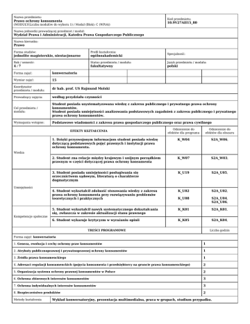 Prawo ochrony konsumenta - Wydział Prawa i Administracji