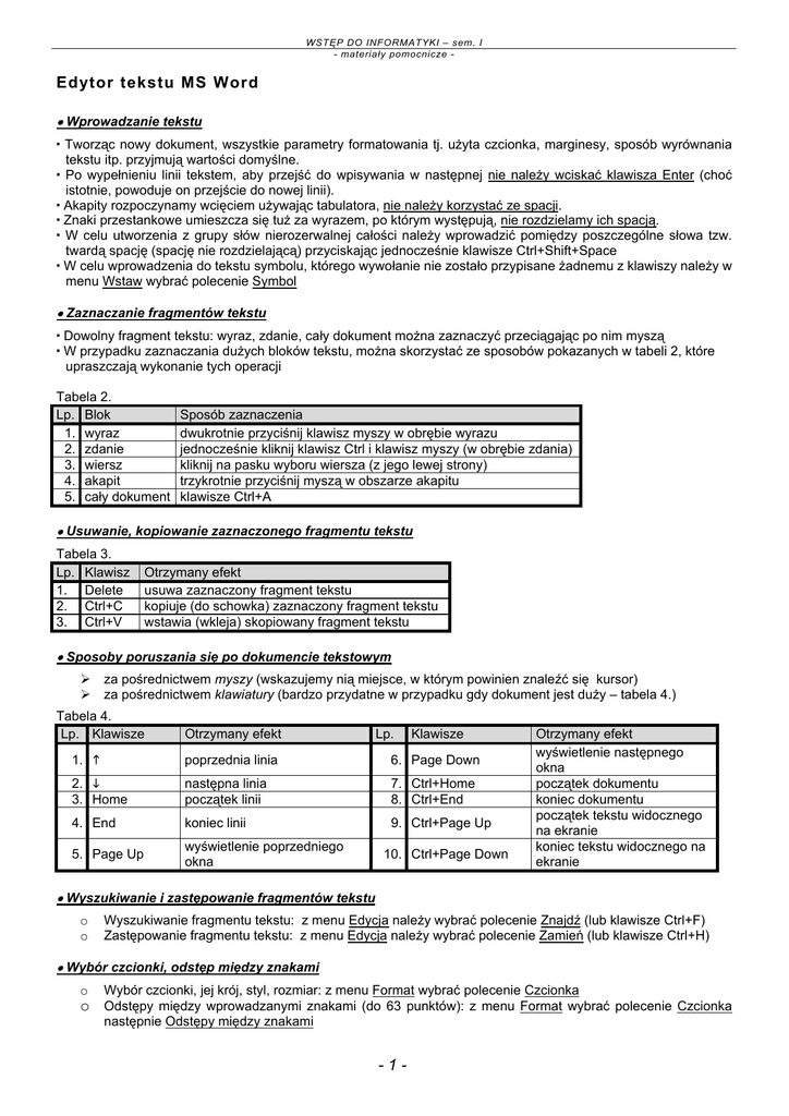 - 1 - Edytor tekstu MS Word