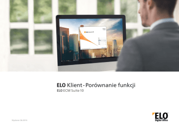 ELO Klient - Porównanie funkcji ELO ECM Suite 10 Wydanie: 06.2016 ELO Klient - Porównanie funkcji / ELO ECM Suite 10 Obszar funkcji Funkcjonalność ELO Java Client ELO Windows Client ELO Web Client ELO for Mobile Devices iOS ELO for Mobile Devices Android ELO Client for IBM Notes ELO Client for Microsoft Outlook ELO Client for Microsoft Office ELO File System Client ELOxc Client for Microsoft Outlook Archiwizowanie 1 Archiwizowanie plików 2 Automatyczne archiwizowanie 2 Przeciągnij i upuść (Drag & Drop) 1 3 Archiwizowanie seryjne 3 1,3 Archiwizowanie poprzez dialog Archiwizowanie przy pomocy klauzuli deponowania 2 2 Administracja Tworzenie, edytowanie i usuwanie użytkowników i uprawnień 4 4 4 4 4 4 4 4 4 4 4 4 4 4 4 4 4 4 4 4 4 4 4 4 4 4 4 Tworzenie i wyświetlanie raportów Tworzenie, edytowanie i usuwanie formularzy słów kluczowych Edytowanie i usuwanie list haseł 1 Tylko formaty Outlook (.EML / .MSG/ .VFC) 2 Tylko wiadomości e-mail 3 Bez Archiwizowania seryjnego 4 ELO Administration Console Enterprise-Content-Management · Zarządzanie Dokumentami · Archiwizowanie · Obieg Dokumentów · Collaboration www.elo.com ELO Klient - Porównanie funkcji / ELO ECM Suite 10 Obszar funkcji Funkcjonalność ELO Java Client ELO Windows Client ELO Web Client ELO for Mobile Devices iOS ELO for Mobile Devices Android ELO Client for IBM Notes ELO Client for Microsoft Outlook ELO Client for Microsoft Office ELO File System Client ELOxc Client for Microsoft Outlook Widok archiwum Drzewo archiwum Widok kafelków Miniatury ELO Solutions / ELO Apps Tworzenie, edytowanie i usuwanie folderów Tworzenie, edytowanie i usuwanie skrótów Przesuwanie dokumentów / folderów Tworzenie folderów jako rejestrów standardowych / wstawianie rejestrów standardowych Tworzenie, edytowanie i usuwanie Linków Edytowanie dokumentów Tworzenie dokumentów na podstawie szablonów Tworzenie, edytowanie i usuwanie dokumentów 6 1,7 1 Tylko formaty Outlook (.EML / .MSG/ .VFC) 6 Edycja poprzez Document Provider 7 Tylko usuwanie Enterprise-Content-Management · Zarządzanie Dokumentami · Archiwizowanie · Obieg Dokumentów · Collaboration www.elo.com ELO Klient - Porównanie funkcji / ELO ECM Suite 10 Obszar funkcji Funkcjonalność ELO Java Client ELO Windows Client ELO Web Client ELO for Mobile Devices iOS ELO for Mobile Devices Android ELO Client for IBM Notes ELO Client for Microsoft Outlook ELO Client for Microsoft Office 10,11 10,11 ELO File System Client ELOxc Client for Microsoft Outlook Edytowanie dokumentów Zarządzanie wersjami dokumentów Tworzenie i edytowanie komentarzy do wersji 8 8 10 10 Wymiana dokumentów Drukowanie, faksowanie, wysyłanie dokumentów (plik, PDF lub Łącze ECD), zapisywanie jako 9 1,10,11 Tworzenie / wysyłanie łączy zewnętrznych Zintegrowany podgląd Dokumenty graficzne (TIFF, JPEG, BMP, PNG) E-mail Dokumenty MS Office PDF Dokumenty www (HTML) Możliwość integracji dodatkowych przeglądarek Pokaz slajdów 12 1 Tylko formaty Outlook (.EML / .MSG/ .VFC) 8 Tylko tworzenie 9 Tylko zapisywanie 10 Wysyłanie pliku / Łącze ECD 11 Drukowanie 12 Funkcja Windows Explorer Enterprise-Content-Management · Zarządzanie Dokumentami · Archiwizowanie · Obieg Dokumentów · Collaboration www.elo.com ELO Klient - Porównanie funkcji / ELO ECM Suite 10 Obszar funkcji Funkcjonalność ELO Java Client ELO Windows Client ELO Web Client ELO for Mobile Devices iOS ELO for Mobile Devices Android ELO Client for IBM Notes ELO Client for Microsoft Outlook ELO Client for Microsoft Office ELO File System Client ELOxc Client for Microsoft Outlook Komentarze Wstawianie załączników do dokumentów Tworzenie, edytowanie i wyświetlanie uwag na dokumencie (karteczki, pieczątki, markery) 13 Notatki OCR / kod kreskowy Rozpoznawanie kodów kreskowych Obsługa OCR Szukanie pełnotekstowe Skanowanie Obracanie, zepnięcie, rozdzielanie stroń, wykrywanie stron oddzielających Skanowanie pojedynczych stron / wielu stron 14 14 Konwersja TIFF/PDF Skrypty Nowe funkcje 13 Tylko wyświetlanie 14 ELO QuickScan (aplikacja) Enterprise-Content-Management · Zarządzanie Dokumentami · Archiwizowanie · Obieg Dokumentów · Collaboration www.elo.com ELO Klient - Porównanie funkcji / ELO ECM Suite 10 Obszar funkcji Funkcjonalność ELO Java Client ELO Windows Client ELO Web Client ELO for Mobile Devices iOS ELO for Mobile Devices Android ELO Client for IBM Notes ELO Client for Microsoft Outlook ELO Client for Microsoft Office ELO File System Client ELOxc Client for Microsoft Outlook Wyszukiwanie Wyszukiwanie pełnotekstowe iSearch, formy fleksyjne *17 Definicja Wyszukiwań jako ulubione Przeszukiwanie słów kluczowych Wiele widoków/wyników wyszukiwania Edytowanie słów kluczowych 15 Edytowanie słów kluczowych Hierarchiczne listy haseł z funkcją wyszukiwania 16 15 16 16 16 Obieg Obieg AdHoc Ręczne rozpoczynanie, przyjmowanie i przekazywanie obiegu dokumentów Współpraca Monitorowanie dokumentów/ folderów Kanał informacyjny (posty, komentarze) Tworzenie, edytowanie i usuwanie przypomnień 15 Możliwość edycji indeksowania po archiwizacji 16 Bez funkcji wyszukiwania 17 Nie wszystkie funkcje są dostępne we wszystkich językach Enterprise-Content-Management · Zarządzanie Dokumentami · Archiwizowanie · Obieg Dokumentów · Collaboration www.elo.com ELO Klient - Porównanie funkcji / ELO ECM Suite 10 Obszar funkcji Funkcjonalność ELO Java Client ELO Windows Client ELO Web Client ELO for Mobile Devices iOS ELO for Mobile Devices Android ELO Client for IBM Notes ELO Client for Microsoft Outlook ELO Client for Microsoft Office ELO File System Client ELOxc Client for Microsoft Outlook Narzędzia pulpitu Dropzone Print&Archive Drukarka TIFF/PDF Click&Find Możliwy tryb offline Dokumenty offline Dalsze właściwości Niezależnie od platformy Brak konieczności instalacji klienta 18 18 Obsługa znaków Unicode 18 Webstart Enterprise-Content-Management · Zarządzanie Dokumentami · Archiwizowanie · Obi