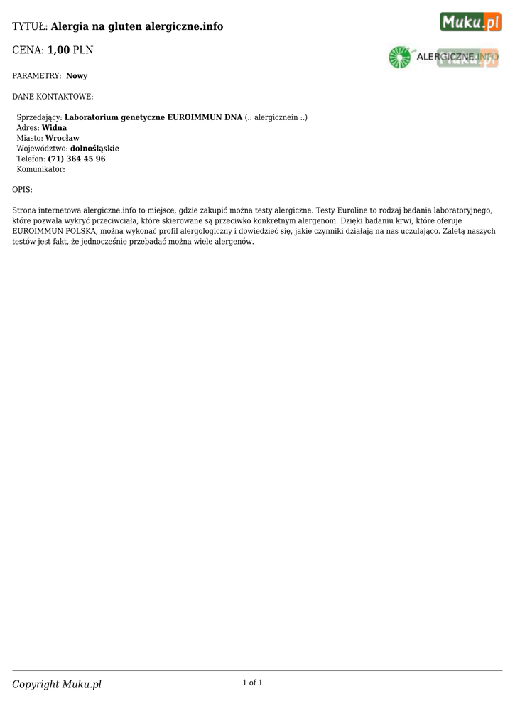 Copyright Muku.pl TYTUŁ: Alergia na gluten alergiczne.info CENA