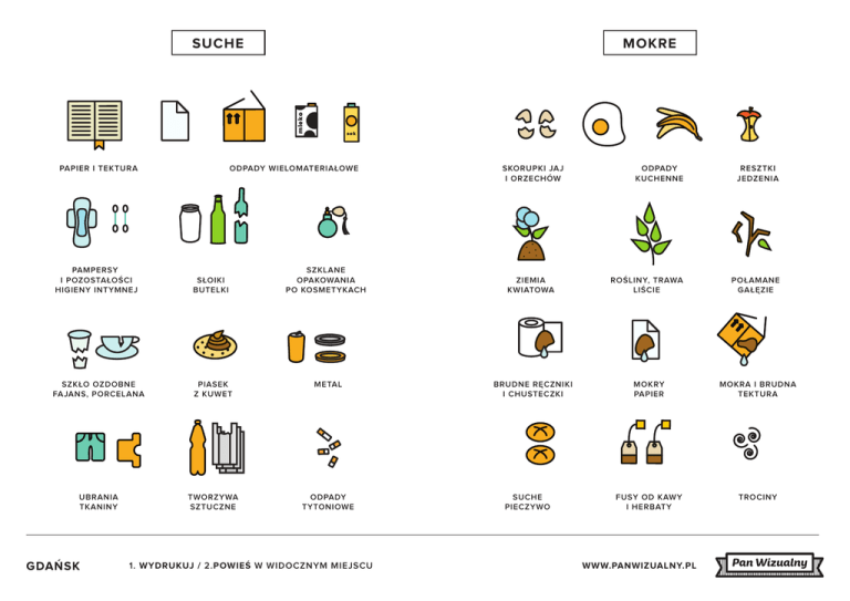 MOKRE mleko SUCHE sok ODPADY WIELOMATERIAŁOWE PAPIER I TEKTURA PAMPERSY I POZOSTAŁOŚCI HIGIENY INTYMNEJ SŁOIKI BUTELKI SZKŁO OZDOBNE FAJANS, PORCELANA PIASEK Z KUWET METAL UBRANIA TKANINY TWORZYWA SZTUCZNE ODPADY TYTONIOWE GDAŃSK SZKLANE OPAKOWANIA PO KOSMETYKACH 1. WYDRUKUJ / 2.POWIEŚ W WIDOCZNYM MIEJSCU ODPADY KUCHENNE RESZTKI JEDZENIA ZIEMIA KWIATOWA ROŚLINY, TRAWA LIŚCIE POŁAMANE GAŁĘZIE BRUDNE RĘCZNIKI I CHUSTECZKI MOKRY PAPIER MOKRA I BRUDNA TEKTURA FUSY OD KAWY I HERBATY TROCINY SKORUPKI JAJ I ORZECHÓW SUCHE PIECZYWO WWW.PANWIZUALNY.PL