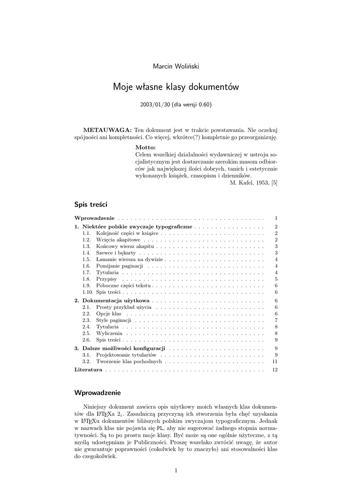 Niniejszy dokument zawiera opis użytkowy moich własnych klas dokumentów dla LATEXa 2ε . Zasadniczą przyczyną ich stworzenia była chęć uzyskania