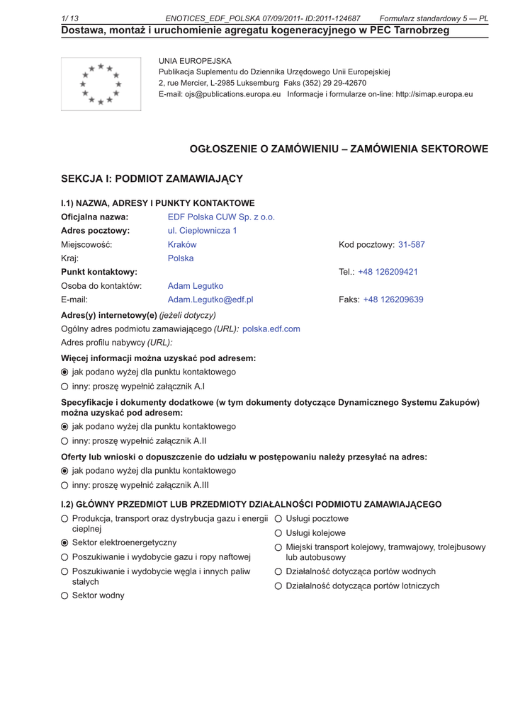 Dostawa, montaż i uruchomienie agregatu kogeneracyjnego w PEC