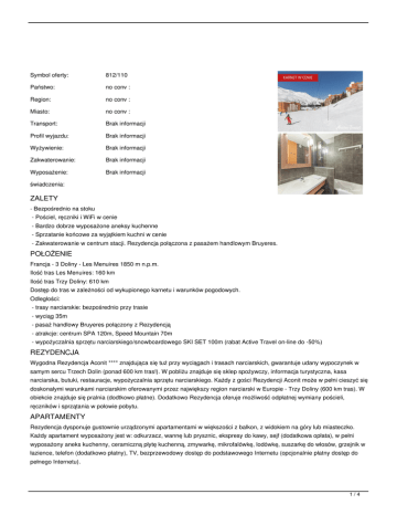 - Zakwaterowanie w centrum stacji. Rezydencja połączona z pasażem handlowym Bruyeres.