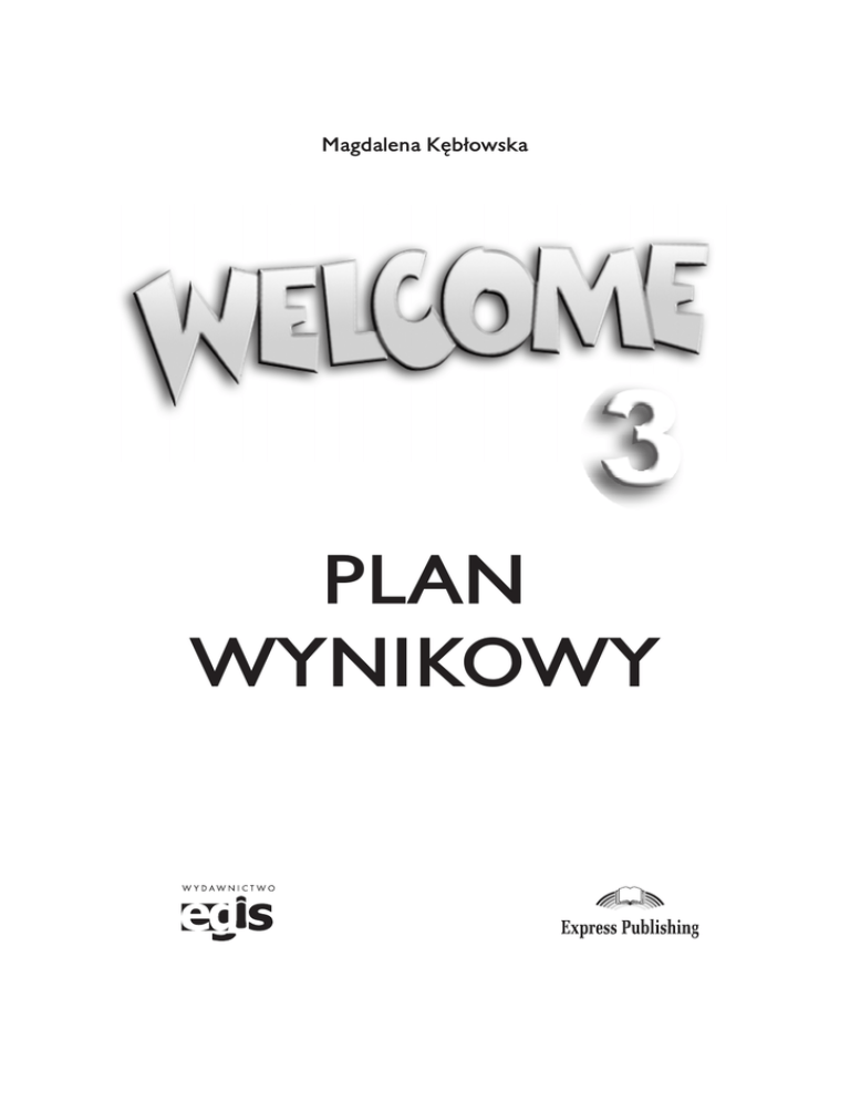 Magdalena Kêb³owska PLAN WYNIKOWY Redakcja Wydawnictwo EGIS Copyright © Wydawnictwo EGIS Sp. z o. o. Wydanie I, 2007 All rights reserved. No part of this publication may be reproduced, stored in a retrieval system, transmitted, in any form or by any means, electronic, mechanical, photocopying, recording or otherwise, without the prior written permission of the publishers. Wszelkie prawa zastrze¿one. ¯adna czêœæ tej pracy nie mo¿e byæ powielana, czy rozpowszechniana w jakiejkolwiek formie w jakikolwiek sposób, b¹dŸ elektroniczny, b¹dŸ mechaniczny, w³¹cznie z fotokopiowaniem, nagrywaniem na taœmy lub przy u¿yciu innych systemów, bez pisemnej zgody wydawcy. Wydawnictwo EGIS Sp. z o.o. ul. Pilotów 71, 31-462 Kraków, Poland tel. +48 12 410 86 25, fax +48 12 410 86 21 [email protected], www.egis.com.pl Wstęp 1. Czym jest plan wynikowy Powtarzając za H. Komorowską, za podstawową zmianę, jaka powinna dokonać się w systemie edukacji w Polsce, należy uważać „ukierunkowanie działań dydaktycznych na osobę ucznia, a nie na osobę nauczyciela” (2000:5)1. Plan wynikowy, który określa o c z e k i w a n e o s i ą g n i ę c i a u c z n i ó w po przerobieniu danej partii materiału, znakomicie spełnia ten warunek i pozostaje w zgodzie z postulatem podejścia skoncentrowanego na uczniu (learner-centeredness). Tak skonstruowany stanowi nieocenioną pomoc w wielu aspektach pracy nauczyciela. Po pierwsze, pozwala zaplanować zajęcia, przygotować dodatkowe materiały i ćwiczenia, pomoce wizualne, tematy prac projektowych itp. zarówno na najbliższy tydzień, jak i na cały rok szkolny, a nawet na koniec danego etapu edukacyjnego. W ten sposób przyczynia się do bardziej spójnego i lepiej zorganizowanego procesu dydaktycznego. Po drugie, jest szczególnie przydatny przy opracowywaniu testów i kartkówek, ponieważ pomaga wyznaczyć właściwe kryteria oceny. Dzięki temu może się również okazać pomocny w kontaktach nauczyciela z rodzicami, dla których jasno sformułowane w planie wynikowym umiejętności i wiedza są bardziej czytelne niż spis treści w języku obcym w podręczniku. Rodzice mogą się także zainteresować planem wynikowym, by wiedzieć, jak pracować z dzieckiem w domu czy jakie materiały mu dostarczyć, by wspomóc pracę nauczyciela, a tym samym przyczynić się do większej niezależności ucznia. Sami uczniowie, zwłaszcza na wyższych poziomach mogą docenić plan wynikowy przy wytyczaniu i realizowaniu swoich celów. Wreszcie będzie plan wynikowy wskazówką dla nauczycieli innych przedmiotów w procesie integracji wiedzy i umiejętności, a w szczególności w trakcie realizacji prac projektowych czy ścieżek międzyprzedmiotowych. 1 Komorowska, H. 2000. „Nowe tendencje w nauczaniu języków obcych.” W: Komorowska, H. (red.). 2000. Nauczanie języków obcych w zreformowanej szkole. Warszawa: IBE. 1 2. Struktura planu wynikowego do podręcznika Welcome 3 (Podręcznik ucznia i Zeszyt ćwiczeń) Poniższa propozycja planu wynikowego składa się z dwóch zasadniczych części: - tabeli zawierającej oczekiwane osiągnięcia uczniów oraz - tabeli ukazującej realizowanie wytycznych Podstawy programowej w danej części podręcznika. 2.1. Oczekiwane osiągnięcia ucznia Podział pierwszej z tabel na wiedzę (czyli Uczeń zna) i umiejętności (czyli Uczeń potrafi) jest istotnym elementem planowania wynikowego oraz ustalania kryteriów oceny. Pamiętać należy, że we współczesnej szkole w i e d z a, a więc opanowanie słownictwa i struktur gramatycznych, nie jest już ostatecznym celem procesu nauczania/uczenia się, a jedynie pomocnym narzędziem w osiągnięciu właściwego celu, czyli u m i e j ę t n o ś c i. Dlatego też znajomość słownictwa i materiału gramatycznego należy traktować jako punkt wyjściowy lub p o z i o m p o d s t a w o w y wystarczający jedynie na ocenę dostateczną. Dopiero to, co uczeń potrafi powiedzieć czy napisać w języku obcym powinno stanowić bazę dla wyższej oceny. W kolumnie Słownictwo znalazły się kategorie leksykalne proponowane w każdym dziale (Unit) podręcznika wraz z konkretnymi przykładami wyrazów, zwrotów czy wyrażeń. Z przyczyn technicznych lista słów nie jest kompletna, zawiera natomiast wystarczającą liczbę przykładów, które pozwalają na rozpoznanie danej kategorii. Warto w tym miejscu przypomnieć, iż na poziomie początkującym każde nowopoznane słowo powinno zazwyczaj znaleźć się w aktywnym repertuarze ucznia. Na wyższych poziomach, gdzie pojawia się coraz więcej nowego słownictwa, nauczyciel, biorąc pod uwagę różne kryteria (np. przydatności dla ucznia, zainteresowań ucznia itp.) będzie często decydował, które słowa uczeń musi znać aktywnie (a więc używać), a które biernie (a więc jedynie rozpoznawać i ogólnie orientować się w znaczeniu). Materiał gramatyczny to lista struktur gramatycznych wraz z przykładami, które uczeń powinien znać, a więc powinien być w stanie prawidłowo zrobić na przykład zadania typu wypełnianie luk (fill-in-the-blank) czy transformacje. Dla przykładu, jeśli uczeń zna czas Present Simple, potrafi wstawić w zdaniach czasowniki w tym czasie w odpowiedniej formie: Jenny .......... (cook) dinner every day. Jenny cooks dinner every day. lub ułożyć pytanie w tym czasie na podstawie zdania twierdzącego: 2 Jenny cooks dinner every day. How often does Jenny cook dinner? To, że uczeń zna daną strukturę nie oznacza jednak, że potrafi jej używać. Ostatnia kolumna tabeli to właśnie umiejętności ucznia, czyli to, jak potrafi opanowane słownictwo i gramatykę stosować w komunikacji. Posługując się poprzednim przykładem, uczeń potrafi używać czasu Present Simple, jeśli na przykład umie rozmawiać z kolegą na temat jego i swoich czynności dnia codziennego: A: How often do you exercise? B: I exercise once a week. A: Do you ever do the shopping? B: I do the shoppi