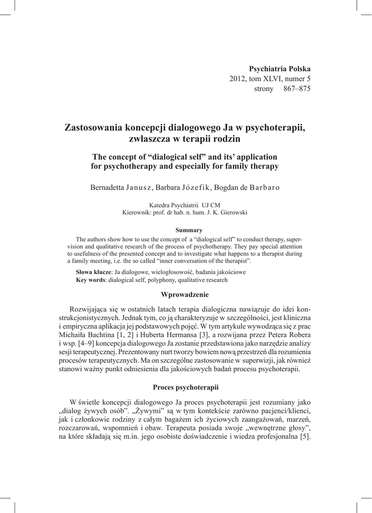 Zastosowania koncepcji dialogowego Ja w psychoterapii, zwłaszcza