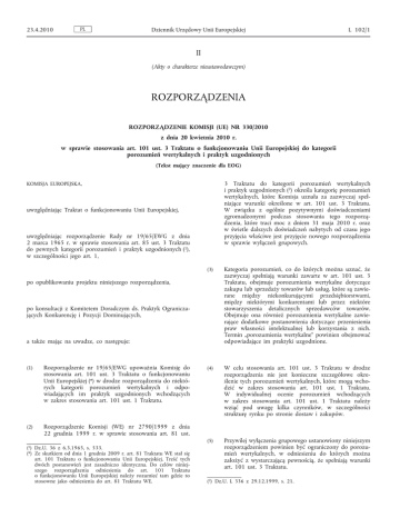 Rozporządzenie Komisji (UE) nr 330/2010 z dnia 20