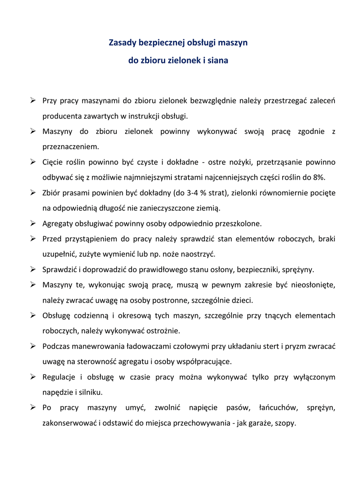 Zasady bezpiecznej obsługi maszyn do zbioru zielonek i siana