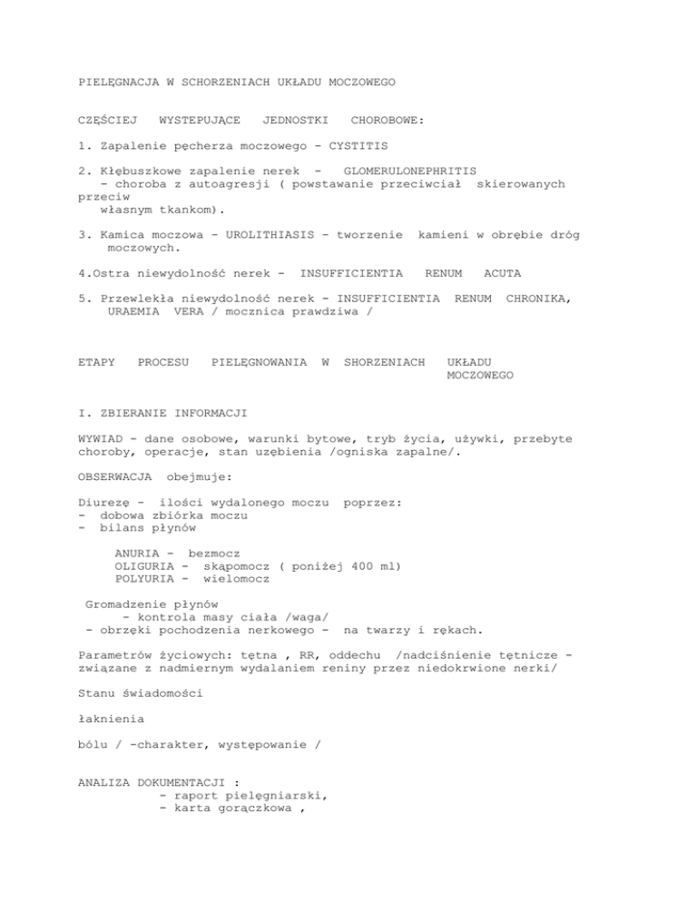PIELĘGNACJA W SCHORZENIACH UKŁADU MOCZOWEGO
