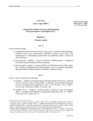 USTAWA z dnia 1 lipca 2009 r. o łagodzeniu skutków kryzysu