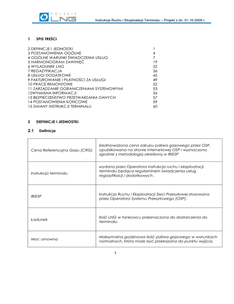 Instrukcja Ruchu i Eksploatacji Terminalu – Projekt z dn. 01.10.2009 r.