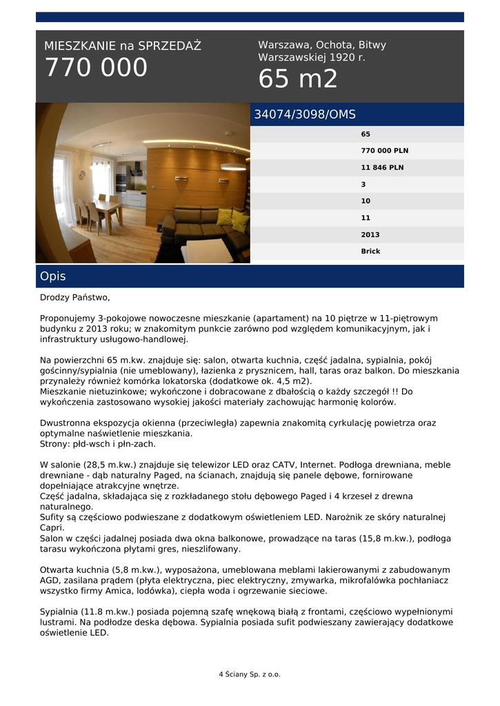 770 000 65 m2 - 4 Ściany Sp. z oo