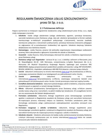 REGULAMIN ŚWIADCZENIA USŁUG SZKOLENIOWYCH przez Sii