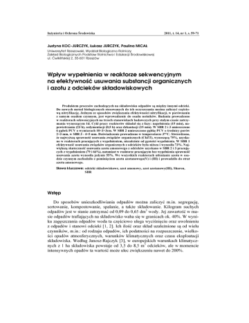 Wpływ wypełnienia w reaktorze sekwencyjnym na efektywność