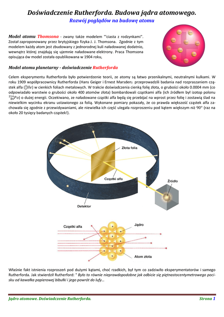 NT. Doświadczenie Rutherforda. Budowa jądra atomowego.
