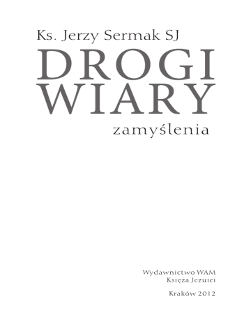 © Wydawnictwo WAM, 2012 Redakcja Jadwiga Zięba Projekt okładki Andrzej Sochacki zdjęcie na okładce: © depositphotos/zhu difeng ISBN 978-83-7767-155-9 NIHIL OBSTAT. Przełożony Prowincji Polski Południowej Towarzystwa Jezusowego ks. Wojciech Ziółek SJ, prowincjał, Kraków, 1 sierpnia 2012 r., l.dz. 215/2012. WYDAWNICTWO WAM ul. Kopernika 26 • 31-501 Kraków tel. 12 62 93 200 • faks 12 42 95 003 e-mail: [email protected] www.wydawnictwowam.pl DZIAŁ HANDLOWY tel. 12 62 93 254-255 • faks 12 62 93 496 e-mail: [email protected] KSIĘGARNIA wysyłkowa tel. 12 62 93 260, 12 62 93 446-447 faks 12 62 93 261 e.wydawnictwowam.pl Drukarnia Wydawnictwa WAM ul. Kopernika 26 • 31-501 Kraków Od Autora Dnia 11 października 2012 r. w 50. rocznicę otwarcia Soboru Watykańskiego II rozpocznie się w całym Kościele katolickim Rok Wiary. Potrwa on do 24 listopada 2013 r. – do uroczystości Chrystusa Króla Wszechświata. Ten czas ma się przyczynić do nawrócenia do Jezusa i do odkrycia wiary, aby wszyscy członkowie Kościoła stali się w dzisiejszym świecie wiarygodnymi i radosnymi świadkami zmartwychwstałego Pana, oraz żeby zdobyli zdolność pokazania wielu poszukującym „bramy wiary”. W taki sposób Kongregacja Nauki Wiary zapowiada ten szczególny czas refleksji nad tym, kim i jakimi naprawdę jesteśmy – ludźmi wiary, uczniami Chrystusa. Czymże jest wiara, którą w tym roku mamy oczyścić, umocnić się w niej i stać się jej wiarygodnymi i radosnymi świadkami? Katechizm Kościoła Katolickiego poucza, że „wiara jest najpierw osobowym przylgnięciem człowieka do Boga; równocześnie i w sposób nierozdzielny jest ona dobrowolnym uznaniem całej prawdy, którą Bóg objawił” (KKK 150). Tak więc wiara jest aktem czysto ludzkim, w którym człowiek dobrowolnie otwiera się na Boga, na Jego obecność i Jego praw5 dę, w świetle której pragnie widzieć i kształtować swoje życie. Jednakże to nie sam człowiek jest twórcą swojej wiary, ale w swojej wolności przyjmuje ją jako największy Boży dar. W nim dostrzega cel swojej życiowej wędrówki i otwiera się na Bożą pomoc do tego, by na drodze wiary wytrwać aż do końca, a gdy trzeba, by tę drogę korygować. „Wiara jest darem danym człowiekowi przez Boga. Ten nieoceniony dar możemy utracić. Św. Paweł ostrzega przed tym Tymoteusza: Wystąp w dobrej walce, «mając wiarę i dobre sumienie. Niektórzy odrzuciwszy je, ulegali rozbiciu w wierze» (1 Tm 1, 18-19). Aby żyć, wzrastać i wytrwać w wierze aż do końca, musimy karmić ją słowem Bożym oraz prosić Pana, aby przymnażał nam wiary”, ta zaś powinna działać przez miłość, „być podtrzymywana przez nadzieję i zakorzeniona w wierze Kościoła” (KKK 162). Wprawdzie wiara jest aktem osobistym wierzącego i wszyscy ponoszą osobistą odpowiedzialność za to jak nią żyją, to jednak realizowana jest we wspólnocie. Każdy z nas dar wiary od kogoś otrzymał i każdy ma obowiązek tym darem podzielić się z innymi. Tak jak człowiek nie może żyć w samotności, wyizolowany od ludzi, tak też nie można przeżywać wiary w oderwaniu od innych. Wspólnotą wiary jest Kościół. Tam właśnie w sakramencie chrztu otrzymujemy wiarę 6 i nowe życie w Chrystusie. W Obrzędzie chrztu dorosłych kapłan pyta katechumena: „O co prosisz Kościół Boży?”, a ten odpowiada: „O wiarę”. „Co ci daje wiara?” – „Życie wieczne!”. Wiara nie jest dodatkiem do życia, jest samym życiem. Mogę więc powiedzieć: „tak żyję, bo jestem człowiekiem wierzącym”. Moja wiara to droga przez życie, które dla nikogo, zwłaszcza w dzisiejszych czasach nie jest proste i łatwe. Wiara to nie jest jednak jakaś magiczna różdżka, która sprawia, że wszelkie trudności znikają, a życie staje się łatwe i przyjemne, bo przeżywane pod parasolem Bożej Opatrzności. Jednakże w wierze człowiek znajduje siłę i światło, by przetrwać nawet najtrudniejsze chwile. Tę potrzebną moc czerpie z Boga, któremu może codziennie powtarzać: Chociażbym chodził ciemną doliną, zła się nie ulęknę, bo Ty jesteś ze mną (Ps 23, 4). Na drogę wiary Stary Testament dał nam Boże Prawo, a Nowy Testament dał nam najlepszego Przewodnika. Jest nim Jezus Chrystus. On nas prowadzi drogą wiary. O Nim każdy wierzący mówi swoim życiem: Wiem, komu zawierzyłem (2 Tm 1, 12), a w chwilach wątpliwości wiara każe mu powtarzać: wszystko mogę w Tym, który mnie umacnia (Flp 4, 13). Człowiek prawdziwie wierzący to taki, który nie wstydzi się wyznać i potwierdzić to swoimi 7 życiowymi wyborami: Dla mnie żyć – to Chrystus (Flp 1, 21). Tego Chrystusa, najlepszego Pasterza i Przewodnika na drogach wiary poznajemy i spotykamy w Ewangelii. Właściwie można powiedzieć, że Ewangelia to Chrystus, bo tam zawarte są słowa Chrystusa, albo słowa o Chrystusie. Miejscem, gdzie Go można najczęściej spotkać na kartach Ewangelii jest droga. Tam powoływał swoich uczniów, tam uzdrawiał i przebaczał, tam nauczał i pocieszał. I choć przeszedł przez świat wszystkim dobrze czyniąc i pokazując, że nie przyszedł żeby świat potępić, ale żeby świat został przez Niego zbawiony (por. J 3, 17), to Jego droga doprowadziła Go na Kalwarię, gdzie zakończył swoje życie na krzyżu. Nie tam był jednak koniec Jezusowej drogi przez świat. Po zmartwychwstaniu wraca do Ojca, zapowiadając jednak tym, którzy w Niego będą wierzyć, że taka będzie także ich ostateczna droga i przeznaczenie: W domu Ojca jest mieszkań wiele. Gdyby tak nie było to bym wam powiedział. Idę przecież przygotować wam miejsce (J 14, 2). Drogę przez życie do domu Ojca Jezus ukazuje nam w Kościele. „Kościół, nasza Matka, uczy nas języka wiary, by wprowadzać nas w rozumienie i życie wiary” (KKK 171). Kościół każdemu z nas na drogę życia daje najlepszy podręcznik – Ewangelię i ukazuje najlepszego przewodnika 8 i