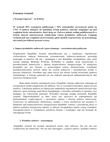 „Republika Armenii nie posiada naturalnych rezerw ropy naftowej. Nie jest ona tam