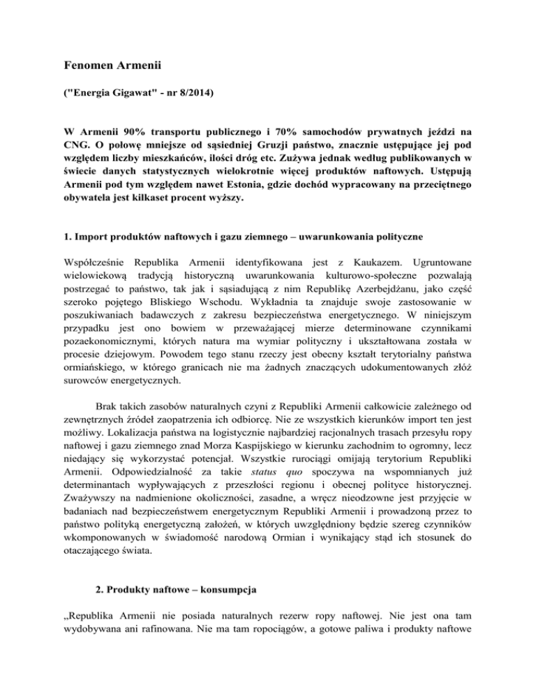 konsumpcji ropy naftowej nie przybliża analiza zamożności mieszkańców Republiki Armenii.