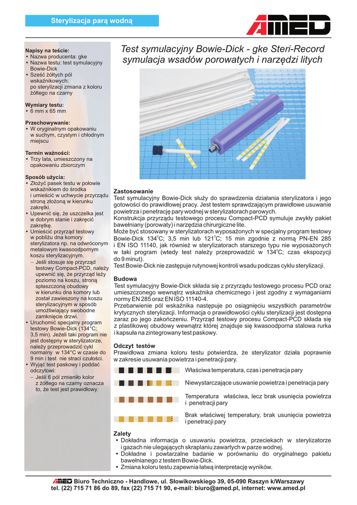 Test symulacyjny Bowie-Dick - AMED Biuro Techniczno