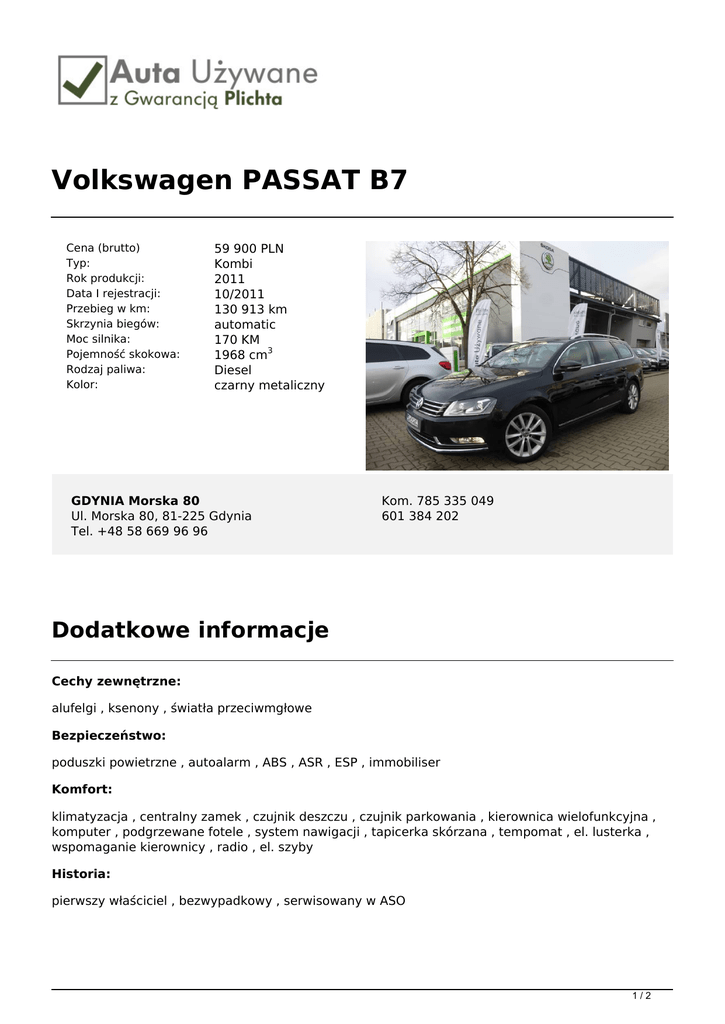Volkswagen PASSAT B7 - Auta używane z gwarancją Plichta