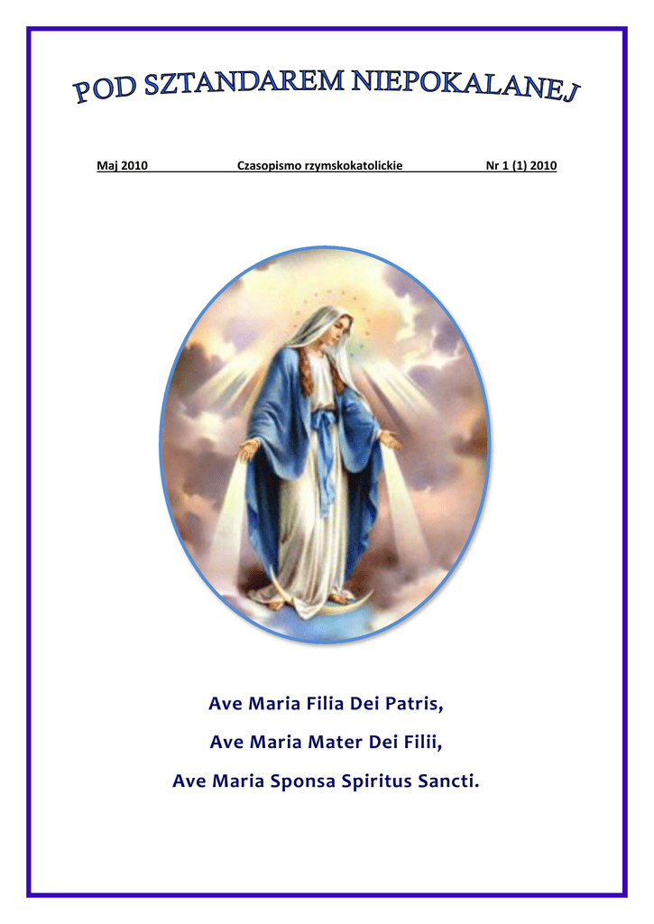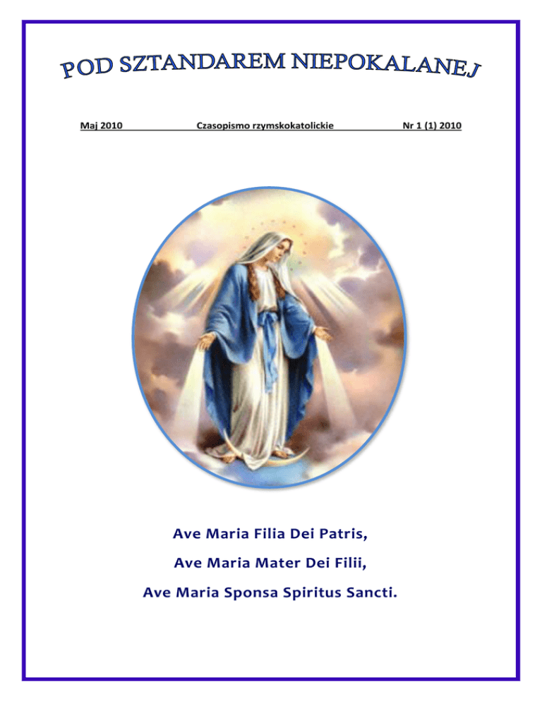 Maj 2010 Czasopismo rzymskokatolickie Ave Maria Filia Dei Patris, Ave Maria Mater Dei Filii, Ave Maria Sponsa Spiritus Sancti. Nr 1 (1) 2010 Wyznajemy Boga w Trójcy jedynego, a Trójcę w jedności, bez pomieszania osób, bez rozłączenia istności. (Quicumque. Credo Atanazjańskie). Spis treści Kazanie o istności Boga .............................................................................................................. 2 Ks. Józef Stragraczyński Co czyni Duch Święty w duszy człowieczej? ........................................................................... 10 Ks. Józef Stragraczyński Za Przyczyną Maryi. – Przykłady opieki Królowej Różańca św. – "Zdrowaś Maryjo" .......... 14 Katechizm św. Roberta Bellarmina. O nauce chrześcijańskiej i o głównych jej częściach ..... 15 Na Świętą Trójcę KS. JÓZEF STAGRACZYŃSKI ––– KAZANIE O istności Boga Wszystkie tajemnice religii chrześcijańskiej wraz z tą najgłębszą i niezbadaną tajemnicą Trójcy Świętej, spoczywają na tej fundamentalnej prawdzie, że Bóg jest, że ponad tym światem jest Duch nieskończenie doskonały, który stworzył nas i wszystko, cokolwiek istnieje, który też przeto jest Panem i Sędzią naszym. Jeżeli nie ma Boga, tedy nie potrzeba religii żadnej. 2 Słusznie można by się dziwić, że zamierzam dowodzić istności Boga, i ja sam trwożę się, gdy się nad tym zastanawiam. Toż ja mam dowodzić istności Tego, który jest nieskończonością i wszechmocą; który jest Królem nieba i ziemi, bez którego ni myśleć, ni mówić nie mogę; w którym my wszyscy żyjemy, ruszamy się i jesteśmy?! Toż ja mam użyczonego mi daru rozumu, myśli, mowy na to używać, by udowodnić istnienie ich Dawcy? Gdyby w tym momencie rękę swą usunął, zapadlibyśmy się wszyscy w przepaść nicości; a my śmiemy pytać się, czy jest, czy żyje rzeczywiście... Czyż to nie zuchwalstwo, nie szaleństwo, gdy robak pełzający w prochu ziemi, podnosi oczy ku Bogu w wielkości Jego i majestacie, mówiąc: "Pozwól, bym badał i bym się przeświadczył, żeś jest; Ty sam daj świadectwo, azali istniejesz...". Pytanie takie i badanie, jeżeli nie pochodzi z niedowiarstwa, lecz z pokory serca, jest dozwolone i usprawiedliwione; jest i poniekąd konieczne, gdy przez sumienne i nabożne rozważanie wiarę naszą tym silniej chcemy w sercu ugruntować. Tym potrzebniejsze zaś w czasach takich, jak nasze, gdy powstają ludzie podobni do onego głupiego w Piśmie św. i odzywają się: "Nie ma Boga!". Niewiara i niedowiarstwo rzuca się zaciekle już na ostatnie prawdy wszelkiej religii: prawdy wiary chrześcijańskiej już dawno to niedowiarstwo odrzuciło. Pytano się już nieraz, czy jest kto rzeczywiście na świecie, co by zaprzeczał Boga. Co do mnie, wątpię, żeby mógł się znaleźć człowiek, któryby, będąc przy zdrowym rozumie, na dłuższy czas zdolen był utrzymywać, że nie ma Boga. Na moment, na kilka chwil mógłby-ci niejeden powątpiewać; grzeszną jaką żądzą zaślepion, na widok nieprawości żywota swego mógłby w trwodze serca życzyć i pragnąć, iżby Boga nie było; lecz nie przypuszczam, by ktoś przy zdrowych zmysłach mógł na czas dłuższy wmówić w siebie, że nie ma Boga. Uczy też doświadczenie, że prawie wszyscy, którzy zaprzeczali istności Boga, na łożu śmiertelnym uznali nierozum swój i odwołali płoche twierdzenia swoje. Lecz chociażby i nie było takich przykładów, chociażby też jeden lub drugi umierał jako ateusz: te wyjątki stwierdzałyby tylko prawdę, jak głęboko może upaść człowiek, gdy go za karę łaska Boża opuściła. Będę dziś mówił o istności Boga i na dowód istnienia wskażę na przyrodzenie, które nas otacza. Przypatrzmy się w tym celu: I. II. III. Układowi. Życiu. Porządkowi w naturze. I. Jako wielki, ogromny pałac przedstawia się oczom naszym ziemia, na której żyjemy. Olbrzymie łańcuchy gór, jakoby żelazne żebra i pierścienie, spoczywają w jej łonie, tworząc fundament tego gmachu i dźwigając wielokształtne życie ziemi. Na nich, jakoby mury i ściany, wznoszą się królestwa przyrodzie. Kruszce i szlachetne kamienie, spoczywające w głębinach, minerały i rośliny we wszystkich kształtach i klasach podnoszą się z jej łona, by ją przystroić i przyozdobić. Twory bez liczby zaludniają przestrzenie tego gmachu: 3 zwierzęta, począwszy od lwa, co majestatycznie przebiega puszcze, aż do robaczka pełzającego w piasku; od orła, krążącego około słońca, aż do ryb morskich, pływających w toni oceanów; i ludzie, co jako króle panują nad ziemią. W niedościgłych przestworzach sklepi się, jak dach pałacu, niebo zasiane gwiazdami, a powietrze przewiewa go, to ledwie dosłyszanym szmerem, to znowu wyciem i rykiem przerażającym. Wód fale wznoszą się w górę, to opadają, kołysząc się bez ustanku i zalewając ziemskie niziny. Na widok tego świata najpierwsze pytanie, nasuwające się nieprzepartą mocą, musi być koniecznie to: Kto zbudował ten pałac? Któż dał istnienie kamieniom i kruszcom, kto dał życie roślinom i zwierzętom, kto dał życie ludziom? Kto stworzył wszystkie siły w przyrodzie? Odpowiedź na to pytanie trojako wypaść może: albo świat ten i twór każdy powstał jakimś przypadkiem; albo sam siebie stworzył; albo też Istota jaka wszechmocna, istniejąca poza nim, dała mu byt i istnienie. Przypatrzcie się tym trzem przypuszczeniom, a obaczycie, iż nierozumem jest mówić, że świat powstał przypadkiem, albo że się sam udziałał. Jedno tylko rozumne zostaje przypuszczenie, tj. że Istota wszechmocna, którą my Bogiem zowiemy, stworzyła ten świat, i wszystko, co na świecie. 1. Zdawać by się mogło, iż to niepodobną rzeczą, by człowiek myślący śmiał twierdzić naprawdę, że świat wszystek powstał z przypadku, trafem jakimś. Gdybym wam mówił, że ten dom Boży zbudowany jest trafem