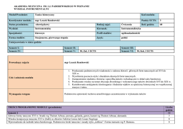 Moduł przedmiotu, AM Poznań - Akademia Muzyczna im. Ignacego
