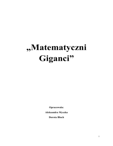 „Matematyczni Giganci” Opracowała: Aleksandra Myszka Dorota Bloch 1 SPIS TREŚCI 1. Charakterystyka programu wspomagania rozwoju umysłowego oraz ich edukacja matematyczna w przedszkolu 2. Cele programu „Dziecięca matematyka w przedszkolu Prof. Edyty Gruszczyk – Kolczyńskiej” 3. Sposób realizacji programu 4. Treści kształcenia dla dzieci pięcioletnich 5. Bibliografia 2 1. Charakterystyka programu wspomagania rozwoju umysłowego oraz ich edukacja matematyczna w przedszkolu „Wiek przedszkolny jest najlepszym okresem do wspomagania dzieci w rozwoju umysłowym. Jeżeli będzie się to czynić umiejętnie, to można będzie skutecznie rozwinąć ich uzdolnienia matematyczne. Badawcza analiza losów szkolnych dzieci wskazuje bowiem, że uzdolnienia matematyczne ujawniają się już w wieku przedszkolnym” 1. Realizacja treści danego programu pozwoli rozwinąć u dzieci możliwości umysłowe oraz przygotuje do uczenia się matematyki w szkole. Program autorski „Dziecięca matematyka w przedszkolu Prof. Edyty Gruszczyk – Kolczyńskiej” został napisany na podstawie programu „Dziecięca matematyka” E. Gryszczyk – Kolczyńska, E. Zielińska oraz własnych notatek ze szkolenia „Dziecięca matematyka prof. Edyty Gruszczyk – Kolczyńskiej” prowadzoną przez Panią Ewę Zielińską. Autorkami programu są: mgr Aleksandra Myszka oraz Dorota Bloch. Przygotowałyśmy program „Dziecięca matematyka w Przedszkolu Prof. Edyty Gruszczyk – Kolczyńskiej”, aby przygotować dzieci do edukacji matematycznej w szkole. Bardzo ważne jest myślenie logiczno – matematyczne, aby rozwijać je na miarę możliwości dziecka. „Dzieci w wieku przedszkolnym charakteryzują się znacznymi różnicami indywidualnymi w zakresie tempa rozwoju umysłowego” 2. Ważne jest, aby nauczyciel stwarzał sytuacje do nabywania doświadczenie, dzieci uczą się poprzez działanie, nabywanie doświadczeń, nauczyciel naprowadza dzieci do wniosku pytaniami. 1 2 E. Gruszczyk – Kolczyńska, E. Zielińska, Dziecięca Matematyka, Warszawa 1999, s. 6. Tamże. 3 Zadania matematyczne muszą być wykonywane na miarę możliwości dziecka. Poprzez konkretne działania dziecko samodzielnie dochodzi do wniosków, rozwija myślenie logiczno – matematyczne. Sześć bloków tematycznych obejmuje zakres rozwoju i edukacji matematycznej, które należy zrealizować, są to: 1. Orientacja przestrzenna, 2. Rytmy i rytmiczna organizacja czasu, 3. Przyczyny i skutek. Przewidywanie następstw. 4. Kształtowanie umiejętności liczenia obiektów. 5. Dodawanie i odejmowanie, rozdawanie i rozdzielanie po kilka. 6. Klasyfikacja. „Realizacja podanych w programie treści kształcenia pozwala zniwelować nieprawidłowości rozwojowe i rozwinąć uzdolnienia matematyczne dzieci. Zapewnia także sukcesy w nauce matematyki” 3. 2. Cele programu „Dziecięca matematyka w przedszkolu Prof. Edyty Gruszczyk – Kolczyńskiej” Głównym celem programu „Dziecięca matematyka w przedszkola prof. Edyty Gruszczyk – Kolczyńskiej” jest przede wszystkim rozwijanie uzdolnień matematycznych dzieci oraz przygotowanie ich do edukacji matematycznej w szkole. Cele szczegółowe: Rozwijanie logicznego myślenia, Rozwijanie orientacji w schemacie własnego ciała i przestrzeni, 3 Op. cit., s. 10. 4 Rozwijanie odporności emocjonalnej, Manipulowanie przedmiotami, Tworzenie kompozycji, budowli, Klasyfikowanie przedmiotów, Rozwijanie umiejętności liczenia, Poznawanie i utrwalanie nazw następstw (dni i nocy, dni tygodnia, miesięcy w roku), Poznawanie i rozwijanie sposobów mierzenia, ważenia, Rozwijanie twórczego myślenia dziecka. 3. Sposób realizacji programu Program został stworzony na potrzeby pracy z dziećmi w wieku przedszkolnym. Skierowany jest do dzieci pięcioletnich (grupa Smyki). Realizację niniejszego programu zaplanowano na okres od października 2015 do czerwca 2016 roku. W tym czasie w oparciu o scenariusze zostaną przeprowadzone zajęcia z całą grupą. 4. Treści kształcenia dla dzieci pięcioletnich I Orientacja przestrzenna 1. Orientacja w przestrzeni. Precyzowanie własnego punktu widzenia, słowne ustalenie relacji: „Ja i moje otoczenie”. 5 Treści szczegółowe: Kształtowanie świadomości własnego ciała: nazywanie wyróżnionych części, dostrzeganie osi symetrii swojej sylwetki, różnicowanie lewej i prawej strony, wprowadzanie kierunków od osi własnego ciała i posługiwanie się umowami typu: lewa, prawa, z przodu, z tyłu itd. Prezentowanie w rysunku wiedzy o relacjach: „Ja i moje otoczenie”. Dbałość o szczegóły. Świadome poruszanie się w przestrzeni: rozumienie i wykonywanie poleceń oraz słowne określanie miejsca, w którym się znajduje dziecko. 2. Drugi człowiek w przestrzeni. Wdrażanie do przyjmowania punktu widzenia drugiej osoby i wymiana informacji. Treści szczegółowe: Schemat ciała drugiej osoby – podobieństwa do własnego ciała. Wyprowadzanie kierunków od osi ciała drugiej osoby: analogicznego sposobu wyprowadzania kierunków od osi własnego ciała. Ustalanie, co widzi druga osoba w różnych sytuacjach i porównywanie tego w własnym punktem widzenia. 3. Wytaczanie kierunków od obranego przedmiotu: na lewo od…, na prawo od…, znajduje się za…, i tak dalej. Porozumiewanie się co do wspólnej przestrzeni: „Ty i ja oraz nasze otoczenie”. Na przykład: Konstruowanie makiety: „Nasze przedszkole”. Ustalanie, jak dojść do określonego miejsca: do sklepu, do przystanku autobusowego itp. Zabawy typu: „Schowany miś”. 4. Orientowanie się na kartce papieru. Treści szczegółowe: 6 Odwzorowanie schematu własnego ciała na kartkę papieru: góra, dół, prawy brzeg, lewy brzeg kartki. Umowy dotyczące kartki leżącej na stole: teraz tu jest góra, dół. Porozumiewanie się w sprawie miejsca na kartce papieru: obrazkiwidoki, plany pomieszczeń, mapa znajomej miejscowości. Dzieci powinny wiedzieć, że istnieją różne spo