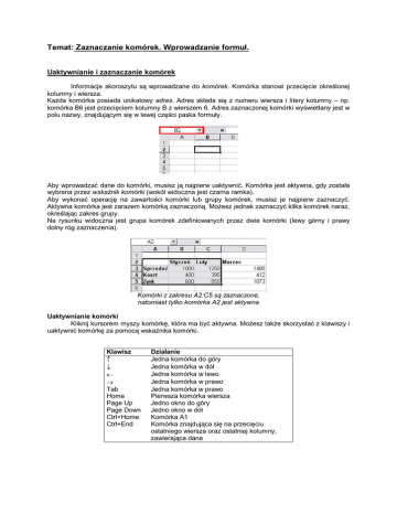 Temat: Zaznaczanie komórek. Wprowadzanie formuł.