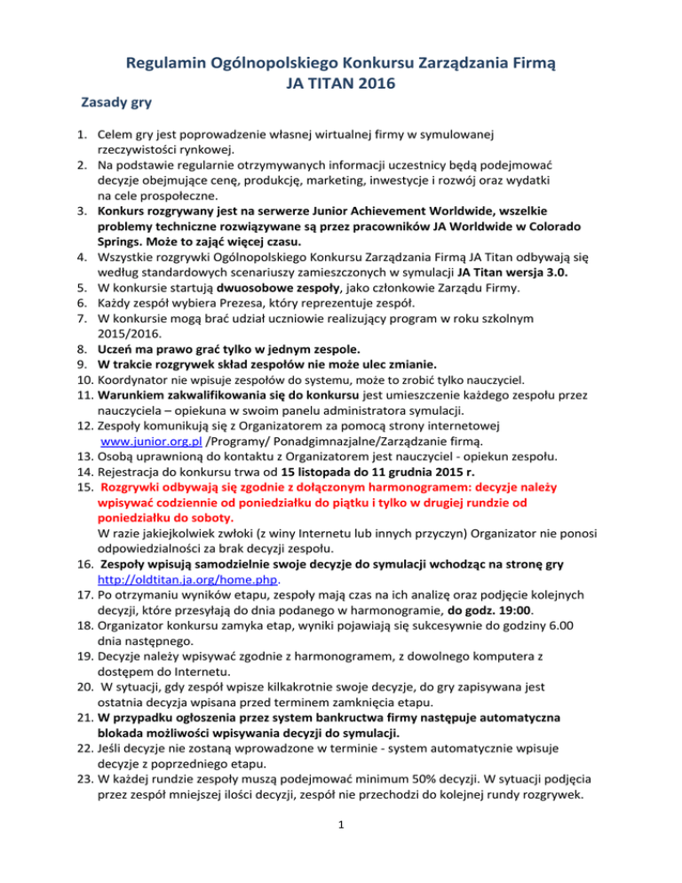 Regulamin Ogólnopolskiego Konkursu Zarządzania Firmą JA TITAN