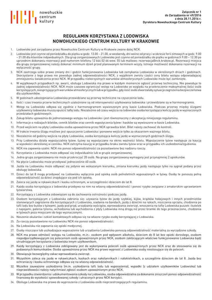 Regulamin Lodowiska - Nowohuckie Centrum Kultury
